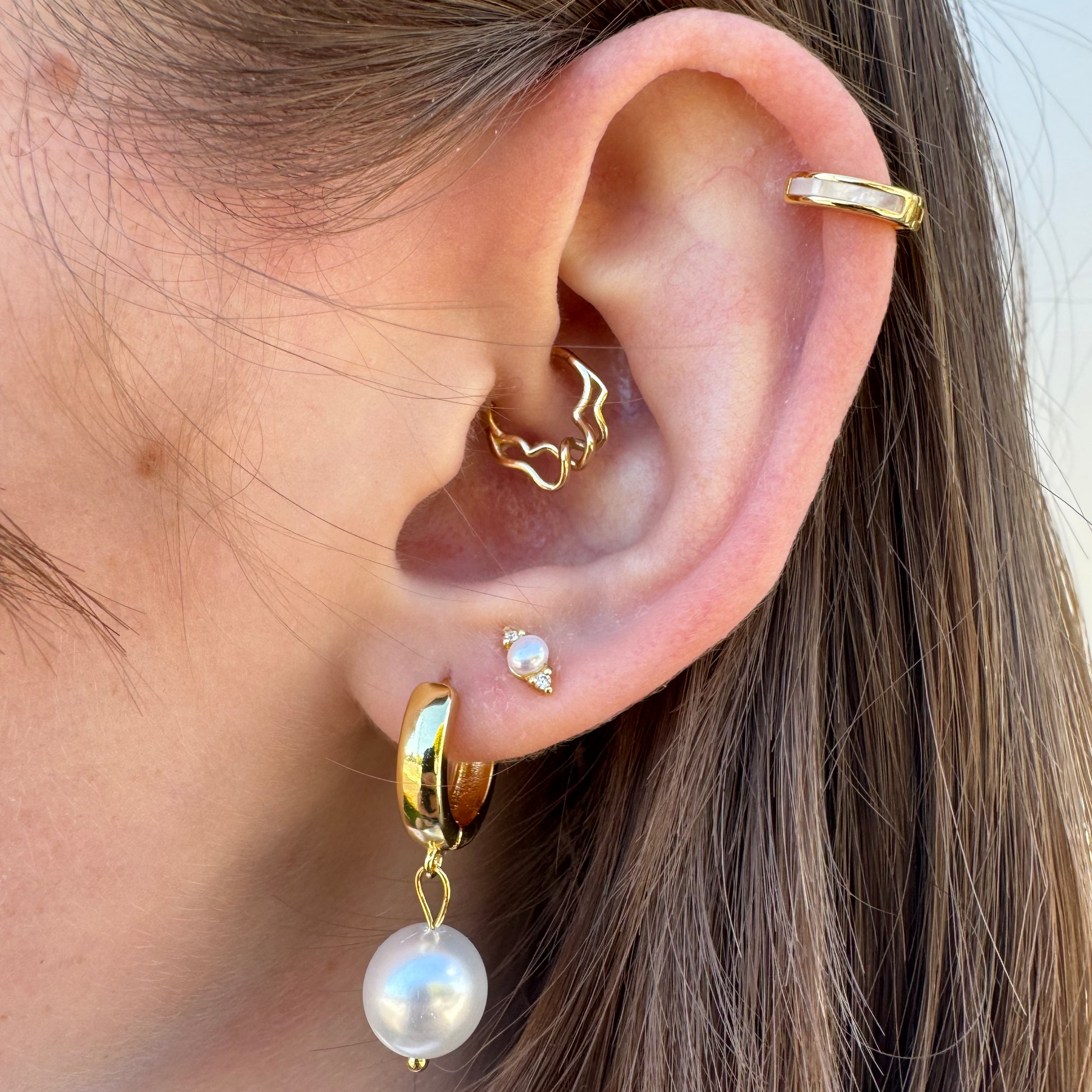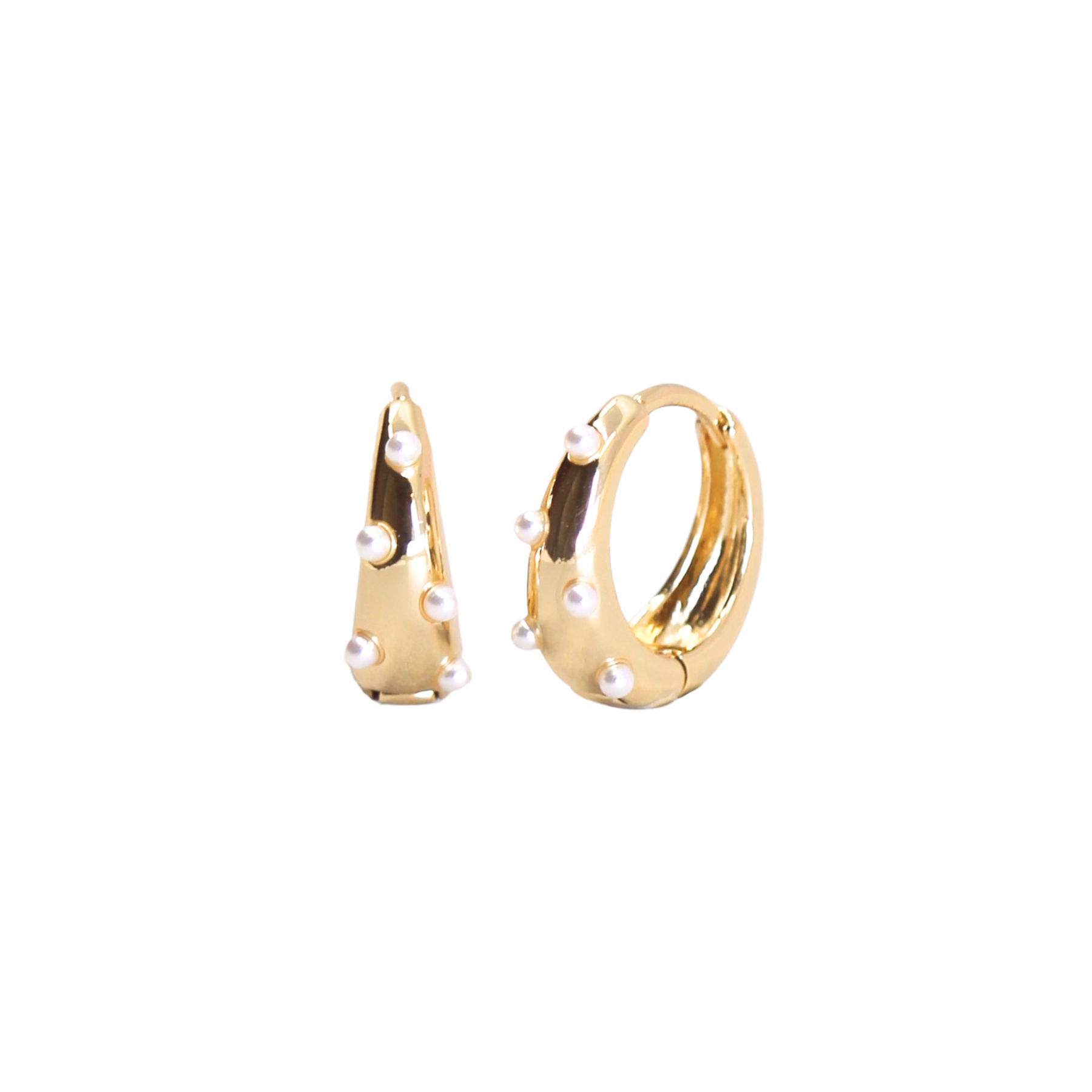 These elegant hoops are named after Mirach, which is a bright star that overshines its neighboring stars, making them appear as pearl dots in the sky.  These hoops are a classic shape made extra special by the five accenting pearls dotting around them.