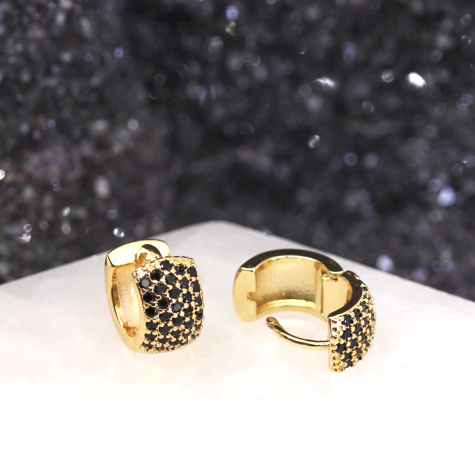 The Mineral and Matter Chiron Black CZ Huggie Hoop Earrings are inspired by the Greek mythology centaur that mentored Achilles. Like Chiron, these hoops radiate wisdom and strength.