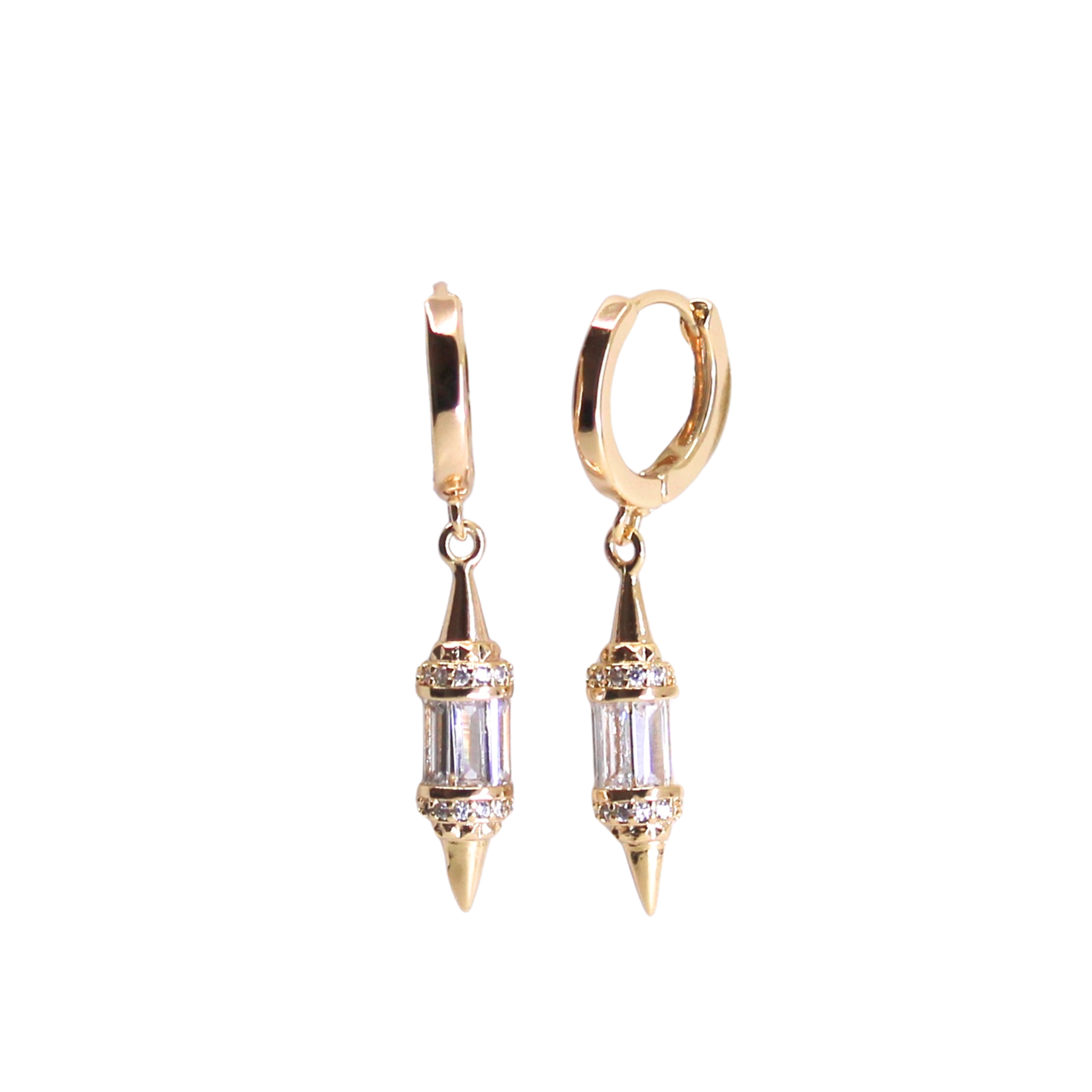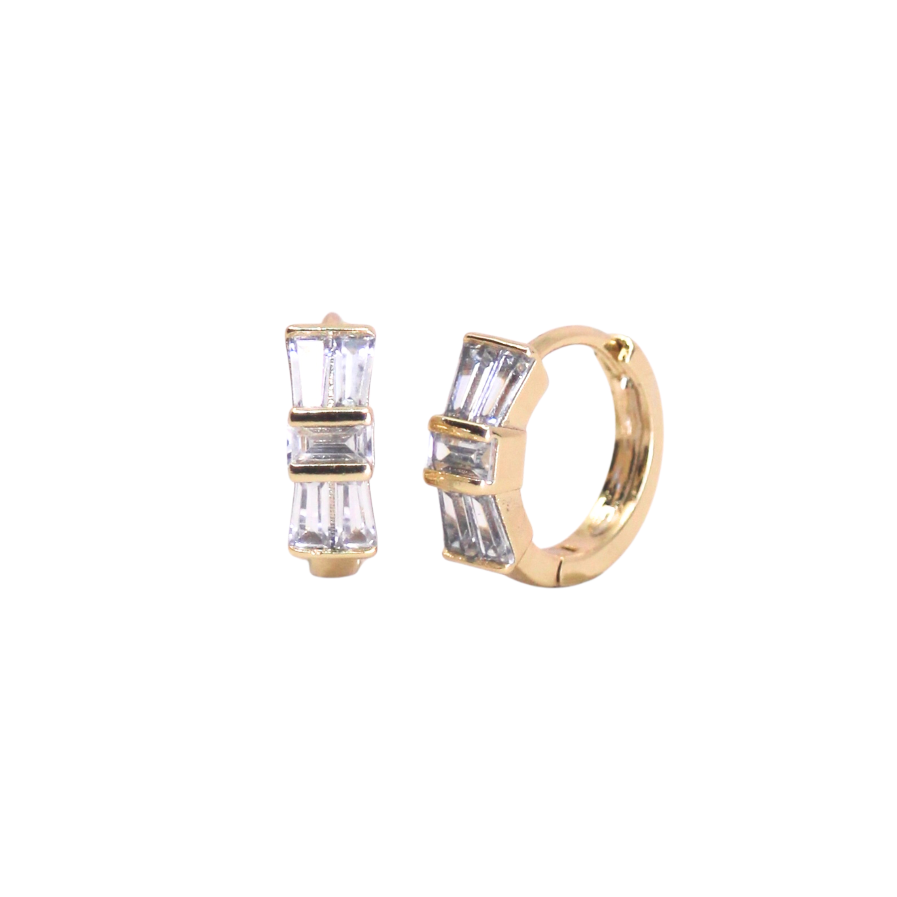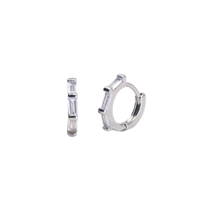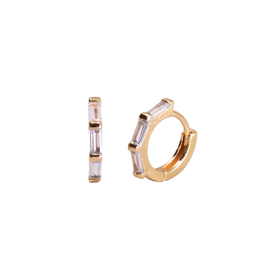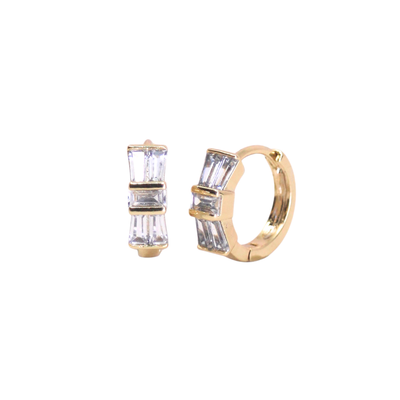 The Orion's Belt Huggies is the namesake of an asterism in the constellation Orion. Made of three bright stars Alnitak, Alnilam and Mintaka, Orion's Belt is perfectly embodied in these huggie hoops encrusted with three bright CZ crystals.