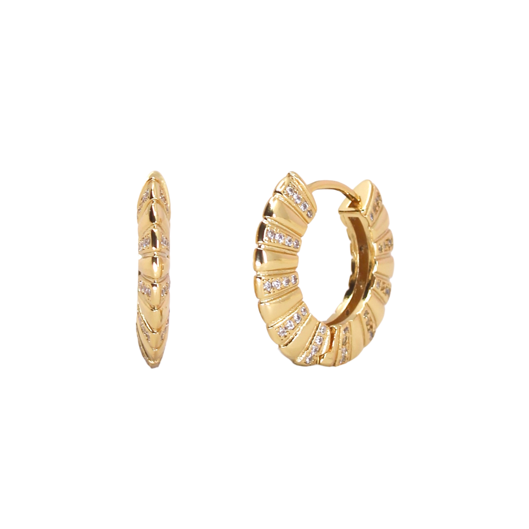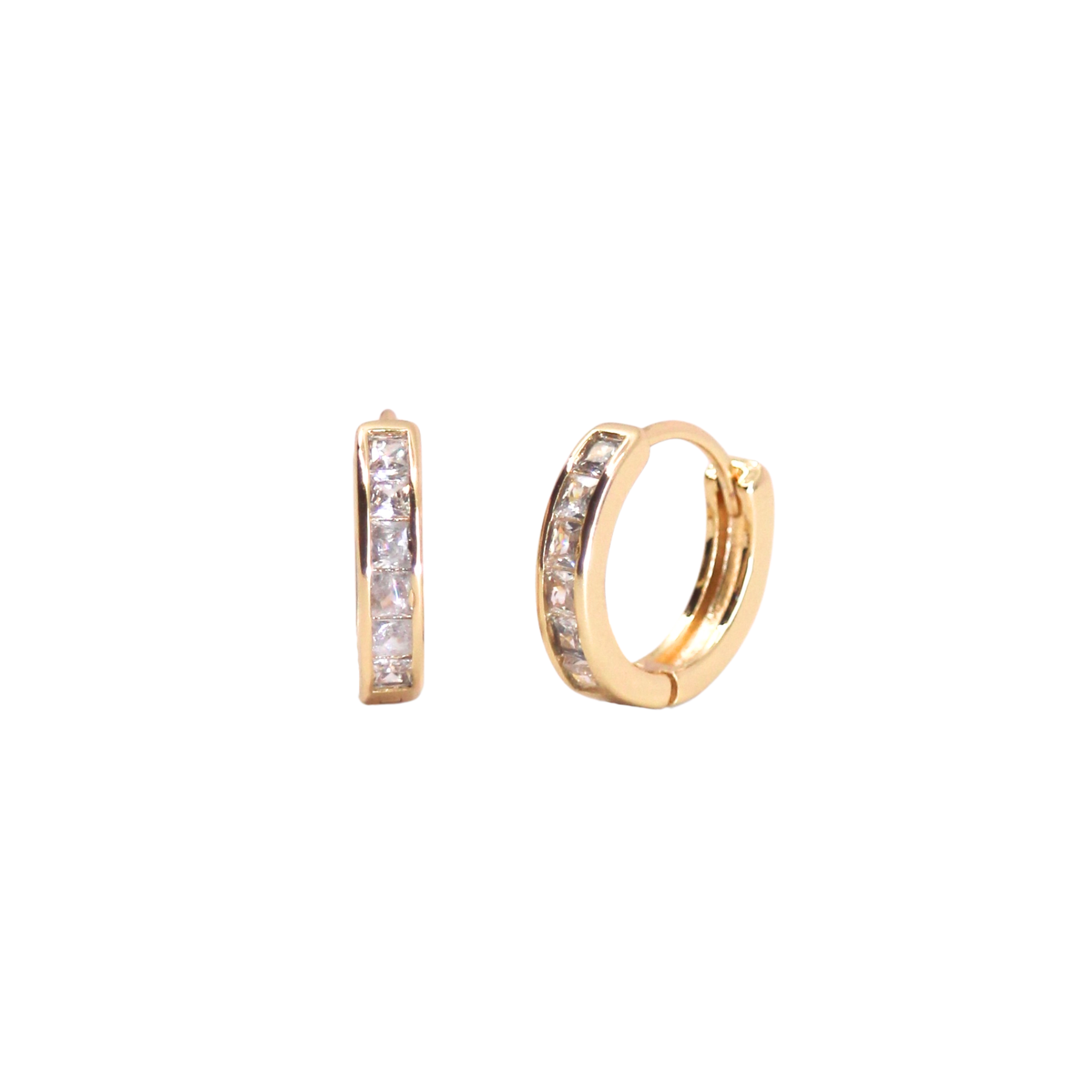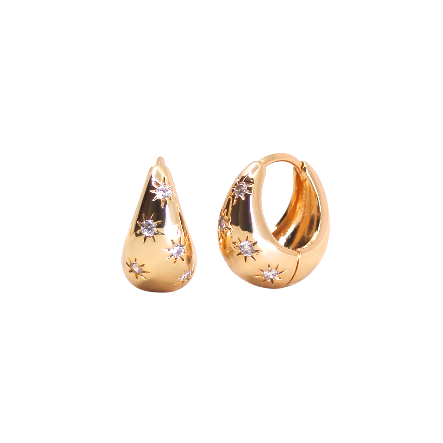 The Orion's Belt Huggies is the namesake of an asterism in the constellation Orion. Made of three bright stars Alnitak, Alnilam and Mintaka, Orion's Belt is perfectly embodied in these huggie hoops encrusted with three bright CZ crystals.