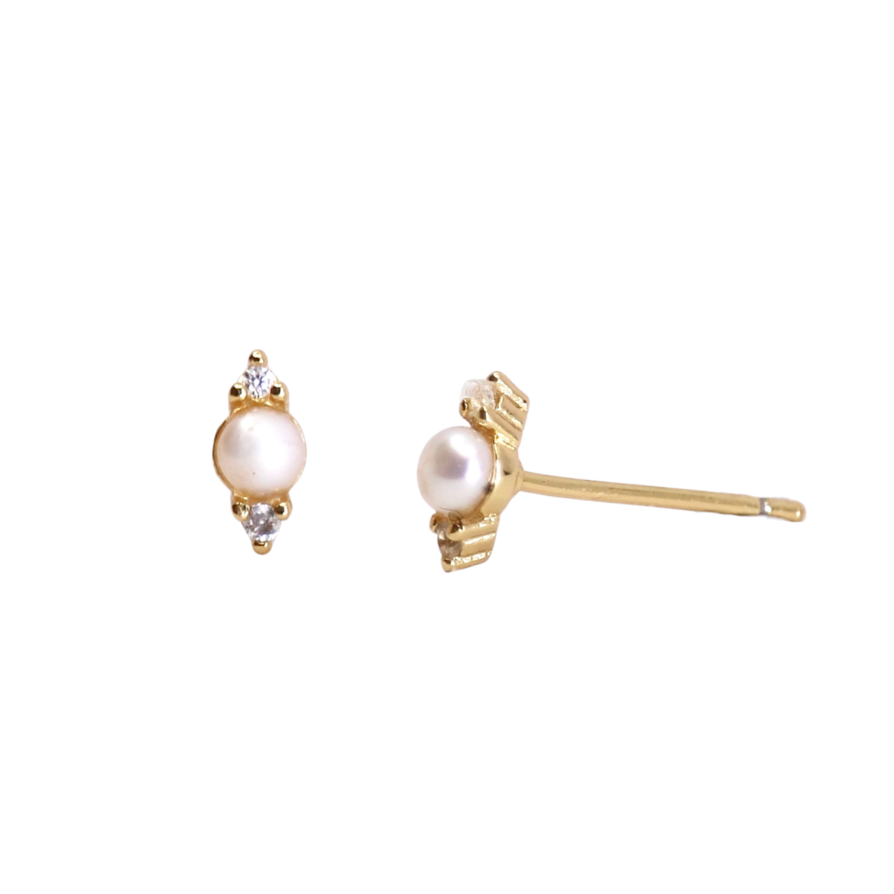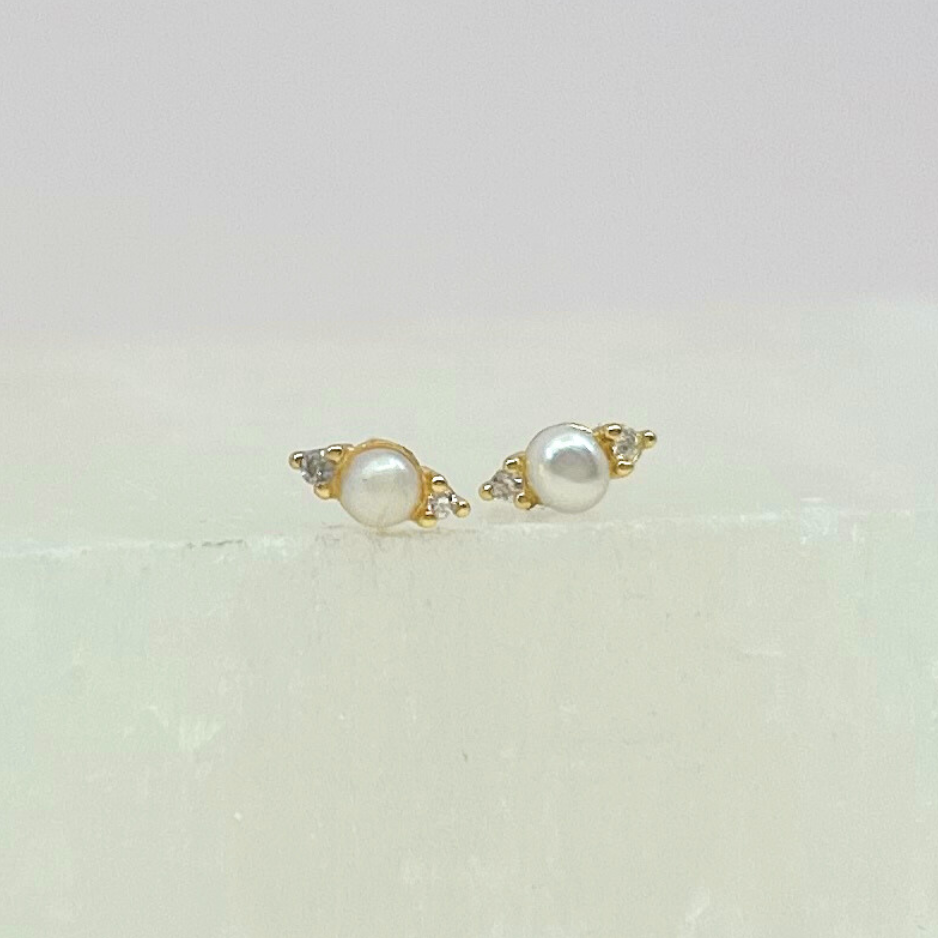 Much like the celestial dance of our sun and moon, these Eclipse studs feature 3 stunning gems vying for attention. A 2mm pearl anchors the tiny CZs for a look that is modern yet timeless.
