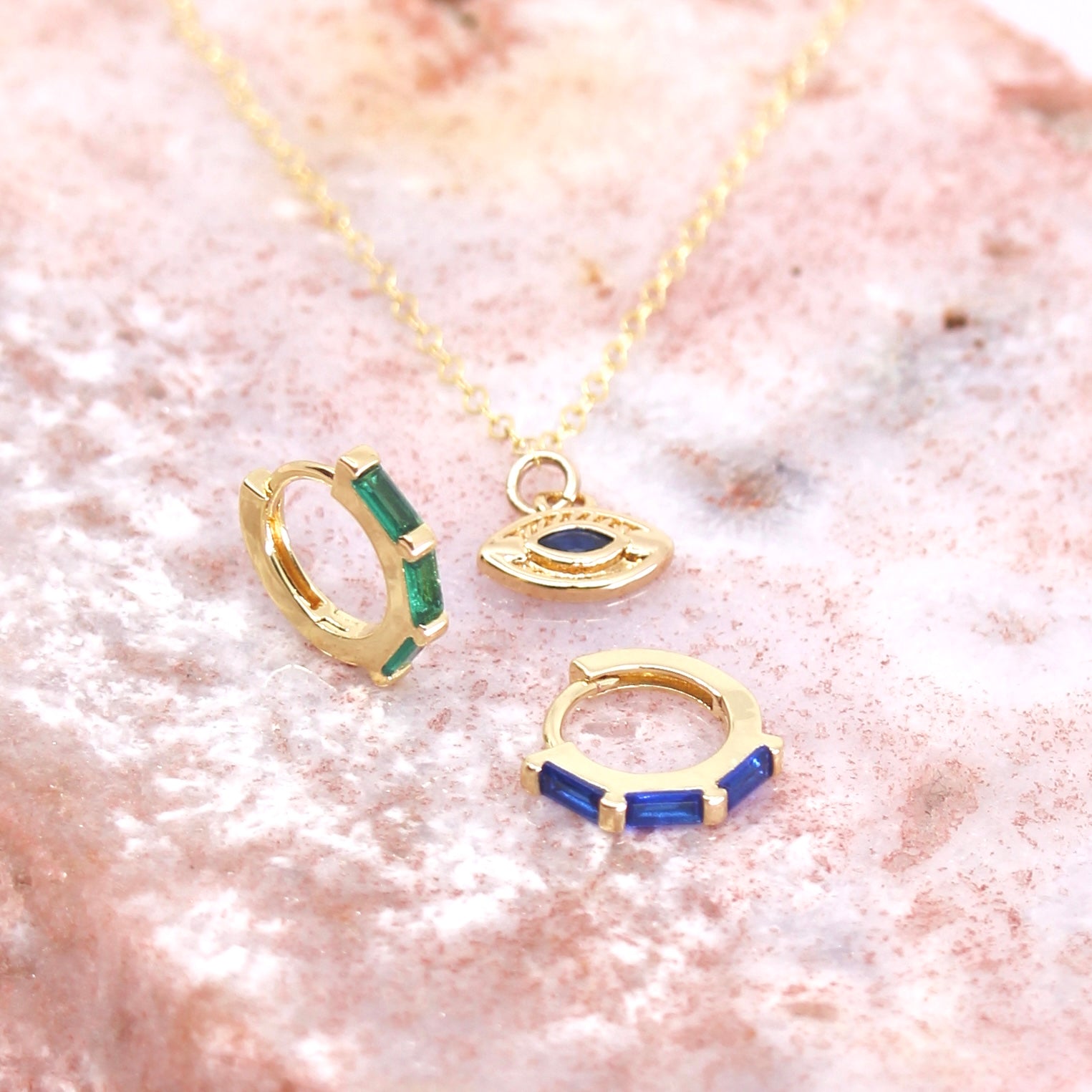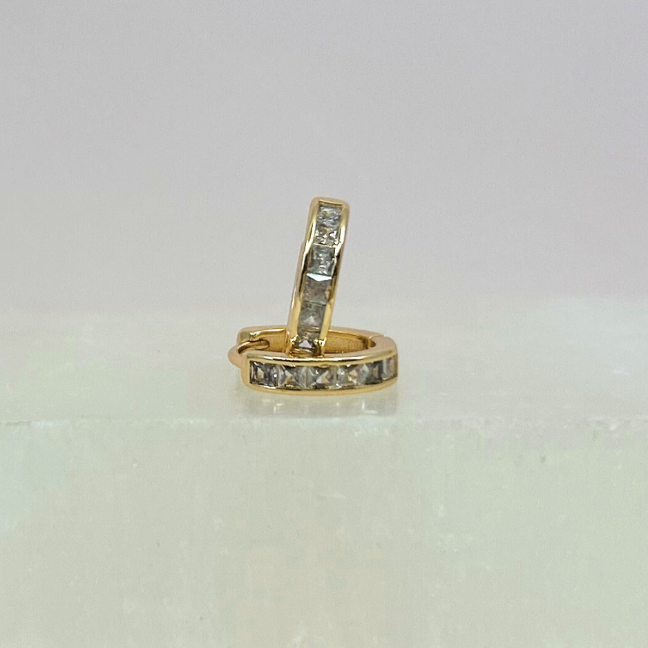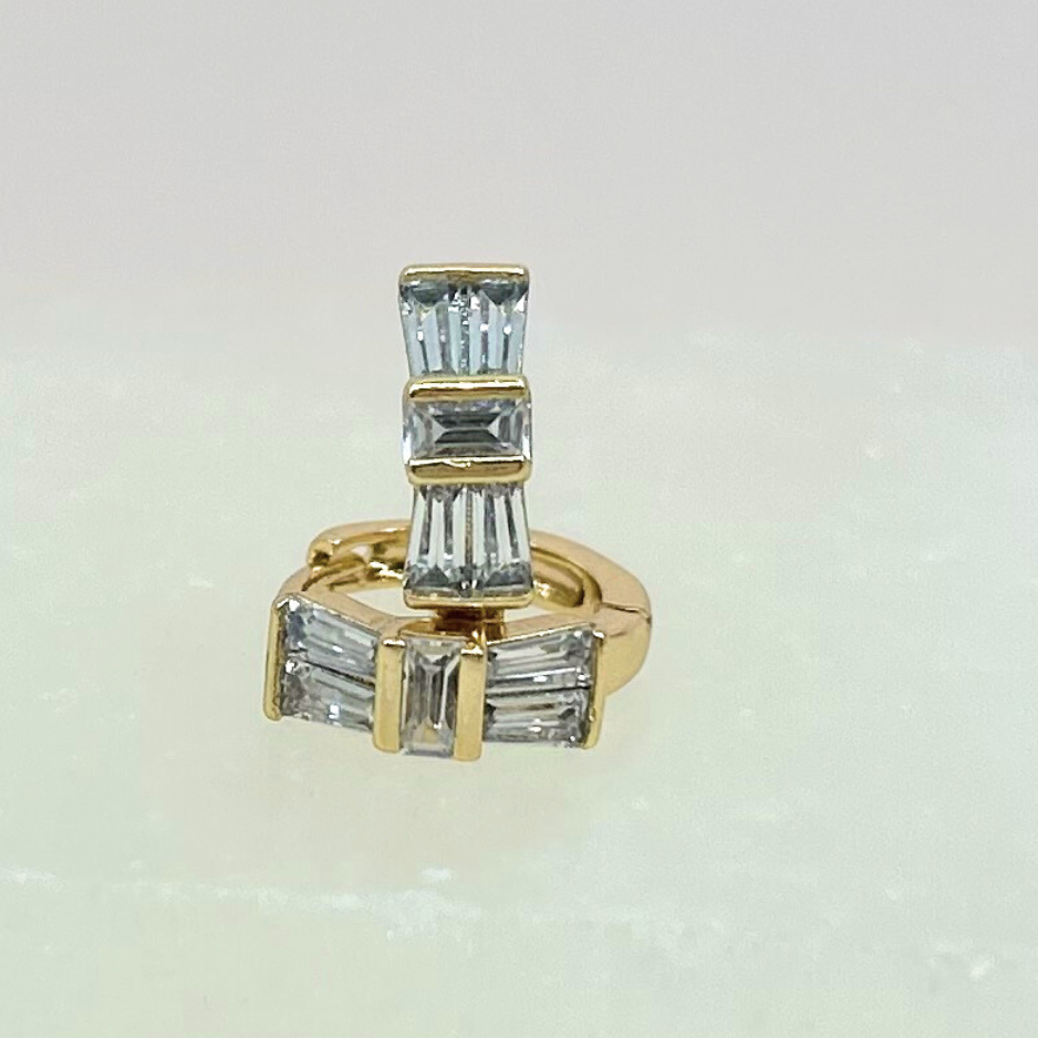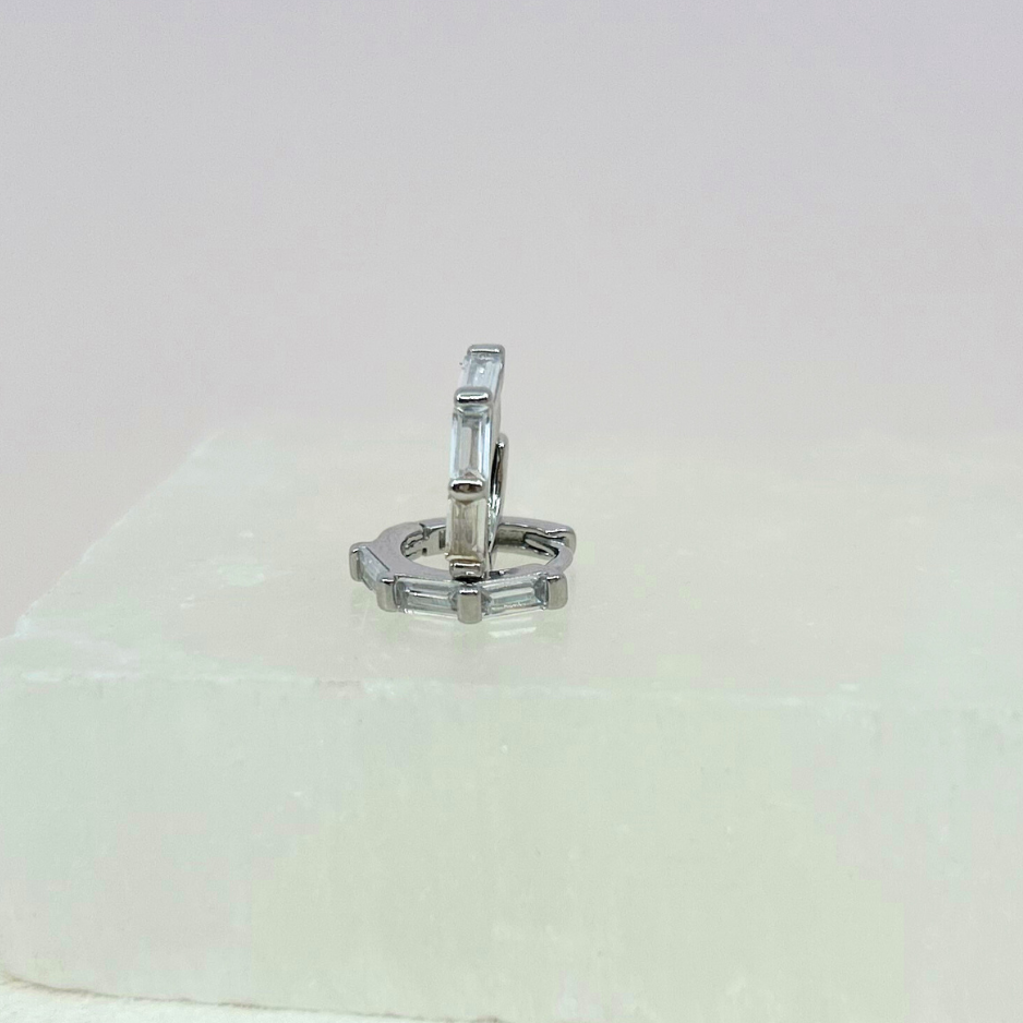 These hoops are named after the star that is a blue color yet sometimes appears green. This star is located in the scorpius constellation and is easily visible to the naked eye. Choose weather your Antares stars are green or blue in the stunning baguette hoops!