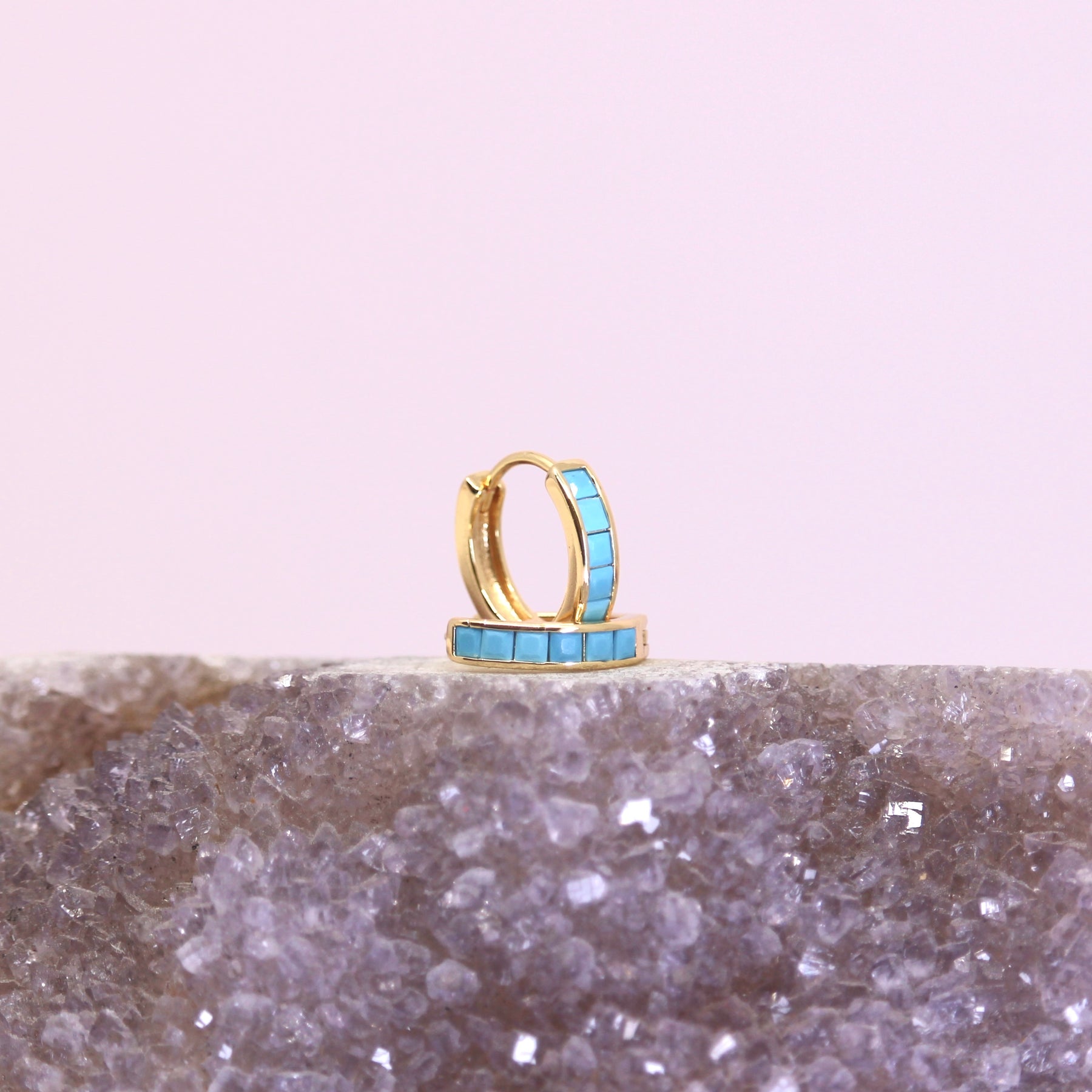 The Mineral and Matter Orion Turquoise Huggie Earrings bring effortless brightness and playfulness to any look. With their intricate orion detailing, these earrings make a statement that is sure to be noticed.