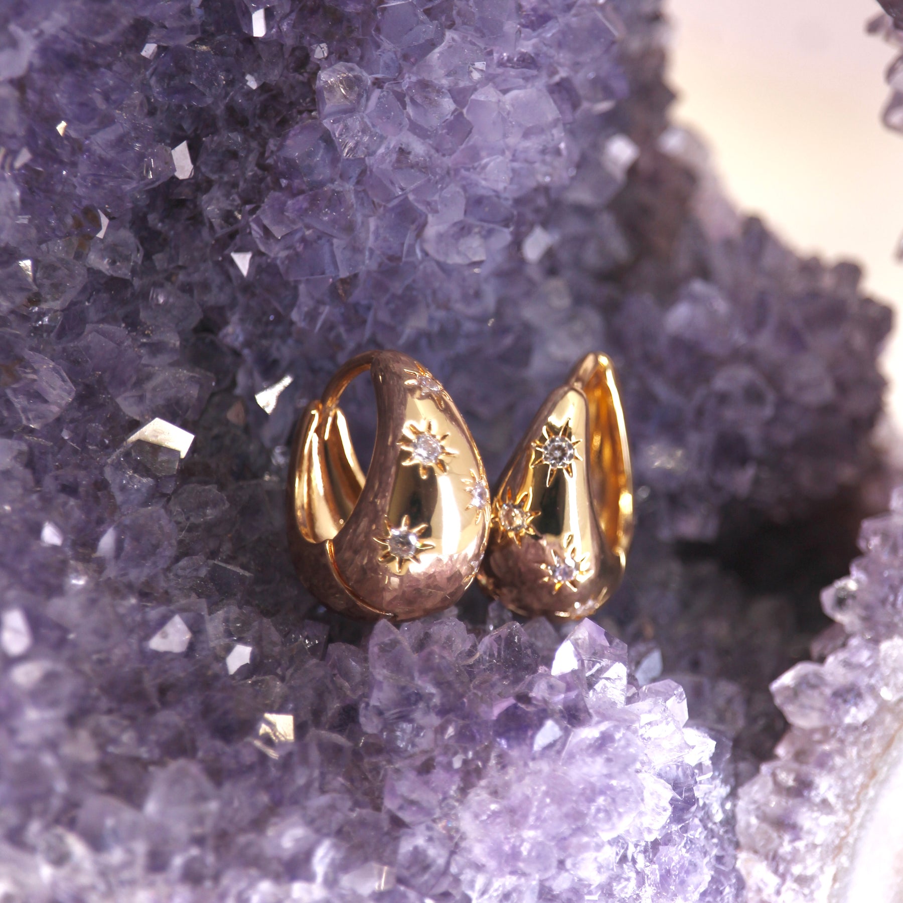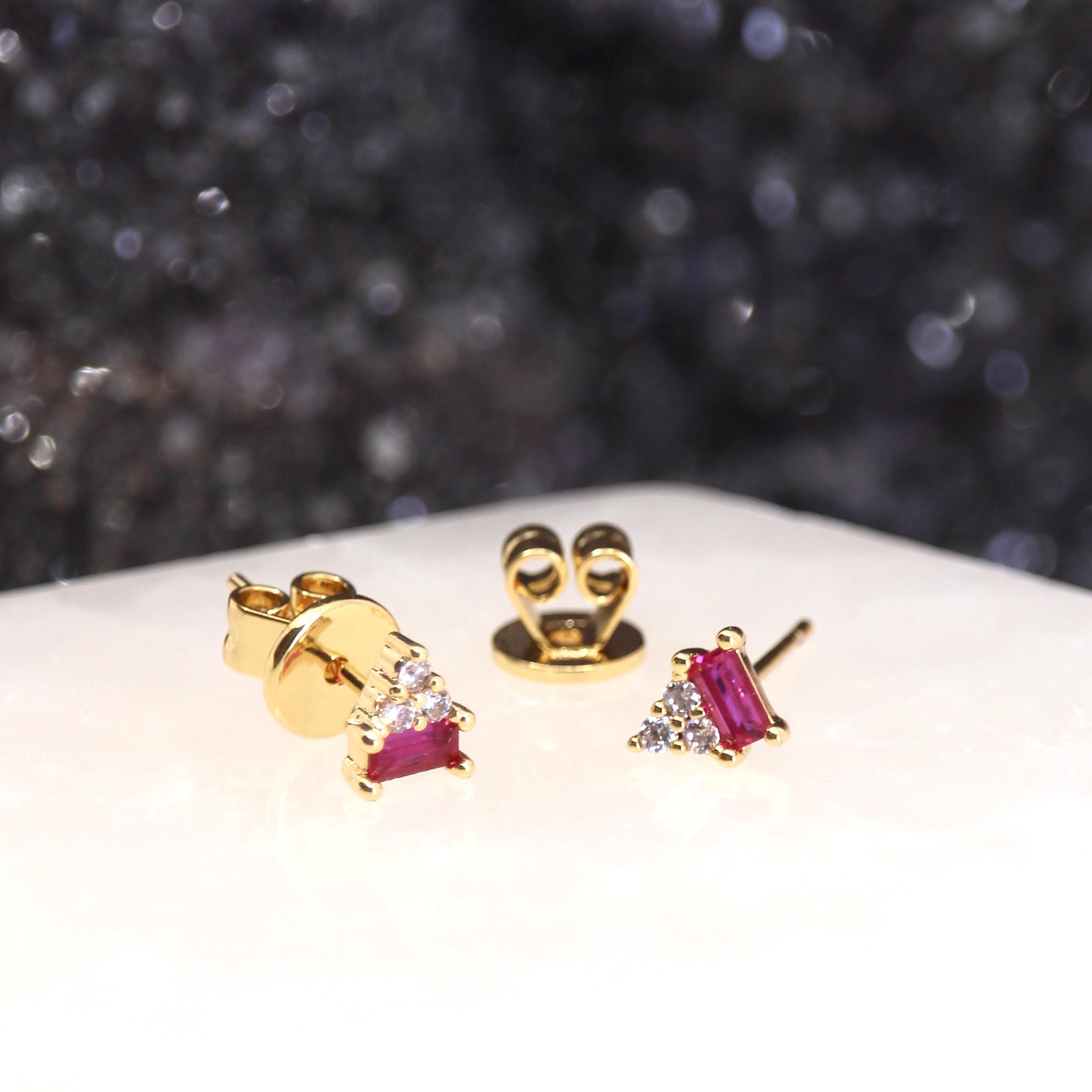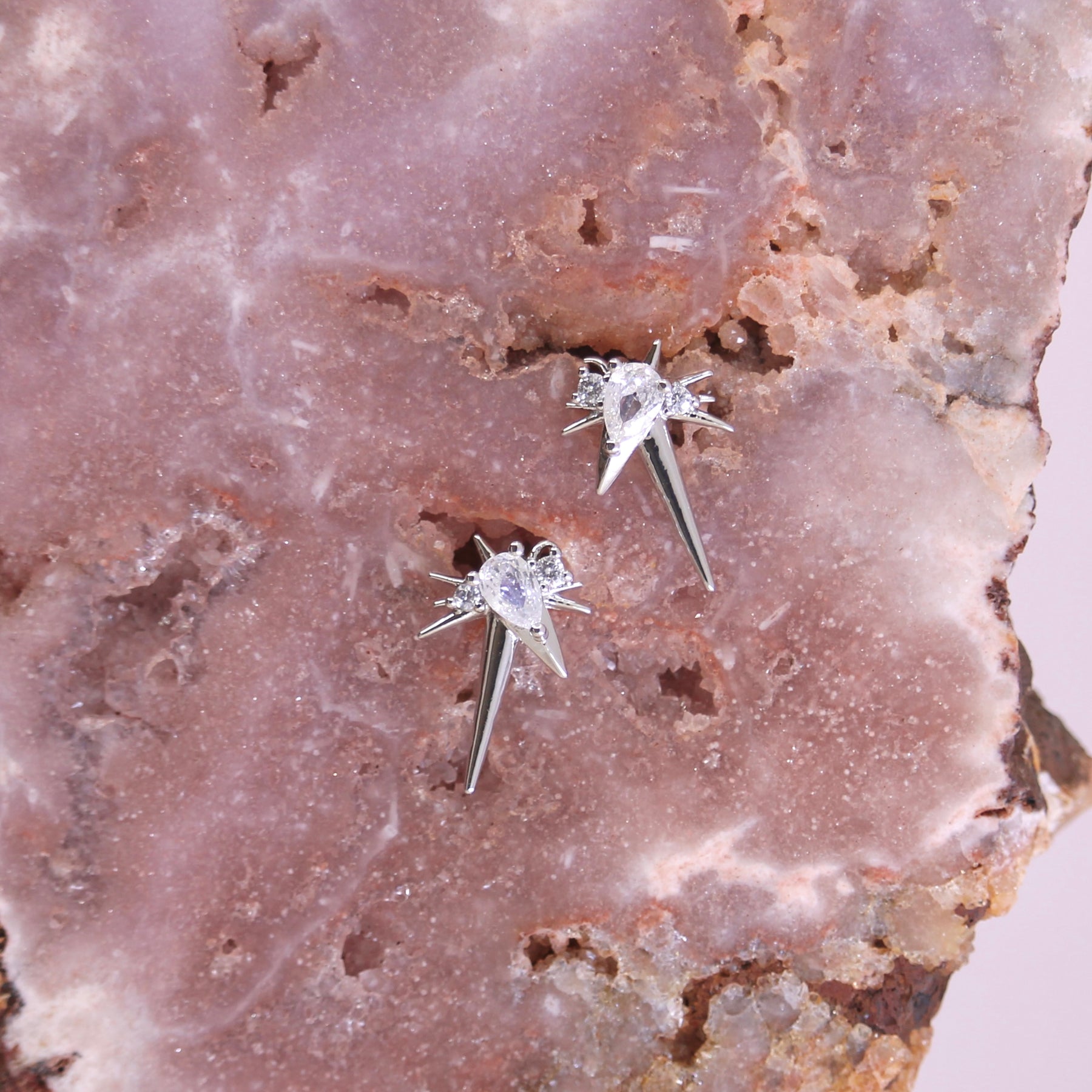In astrology, Zenith is used to track stars by using the observers position in relation to the space above them. Drawing invisible lines and angles with the horizon. Much like the points and angles in these stunning studs.