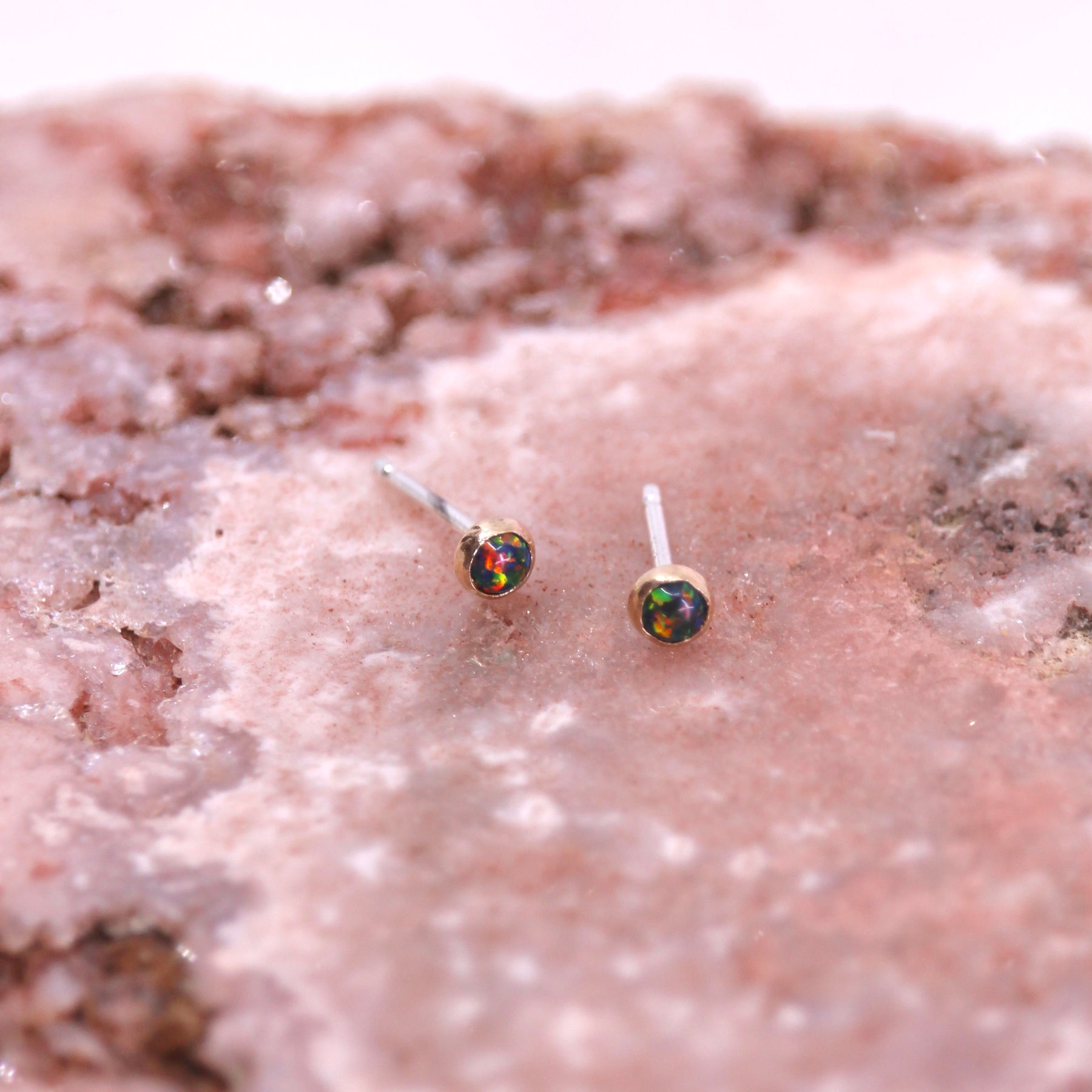 A pair of sparkling opal stud earrings in sterling silver or 14k goldfill.