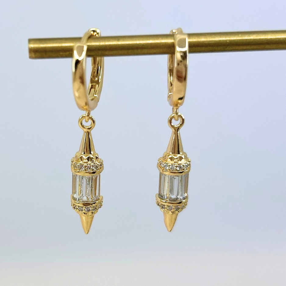 Mineral and Matter's Cathedral Dangle Hoops feature perfectly placed CZ stones that dangle and catch light beautifully in a spired charm. These earrings blend architectural grace with refined design, offering a timeless accessory that complements both formal and everyday looks. Their delicate structure captures the grandeur of sacred artistry while providing a sophisticated touch to your style.