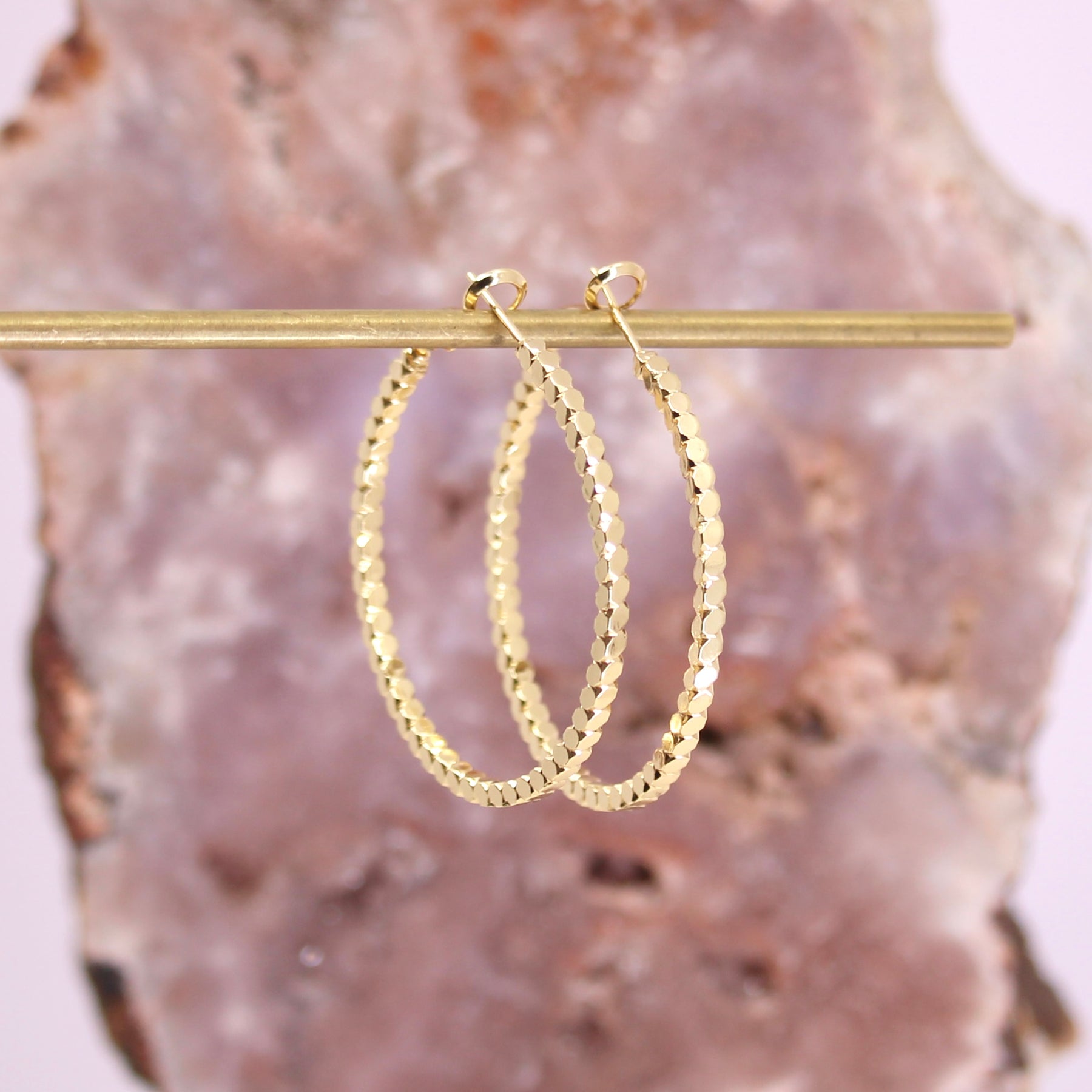 The Mineral and Matter Eris Large Geometric Patterned Hoop Earrings are named after one of the largest dwarf planets in our solar system, Eris. These hoops are the perfect addition to your elegant ear stack!
