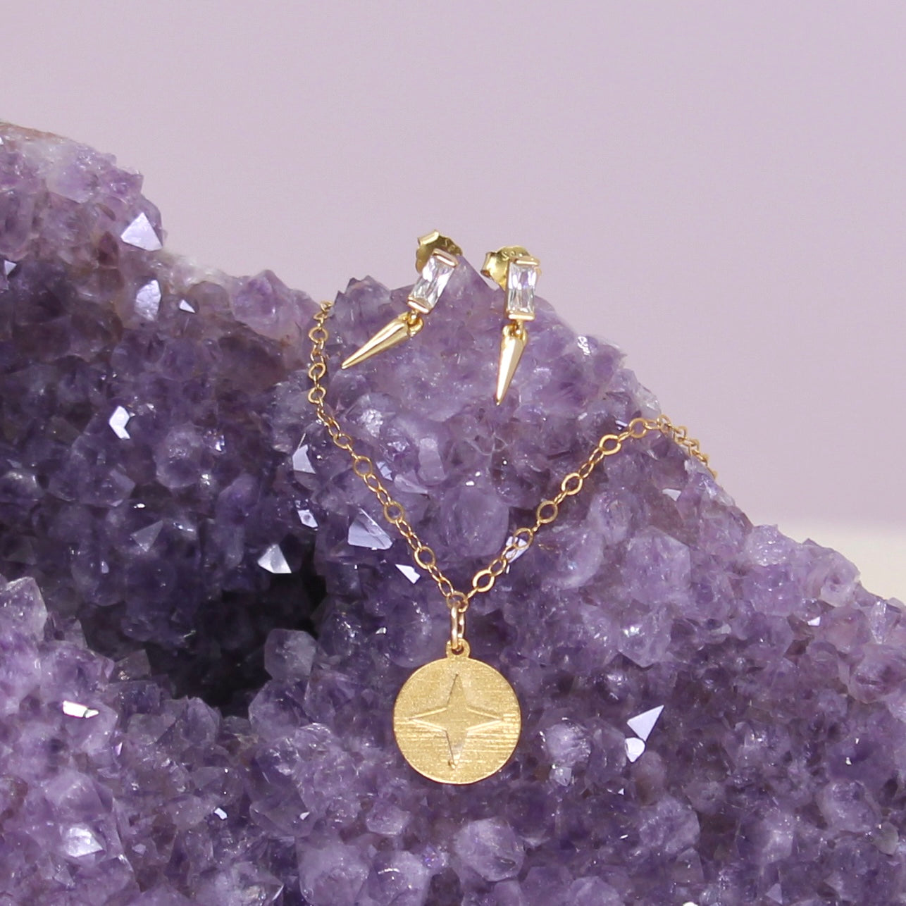 The Bellatrix Crystal Studs are inspired by the star in the constellation of Orion. The word Bellatrix coming from the Latin word meaning “female warrior. These earrings are a reminder of the the soon to be supernova star and its luminous beauty.