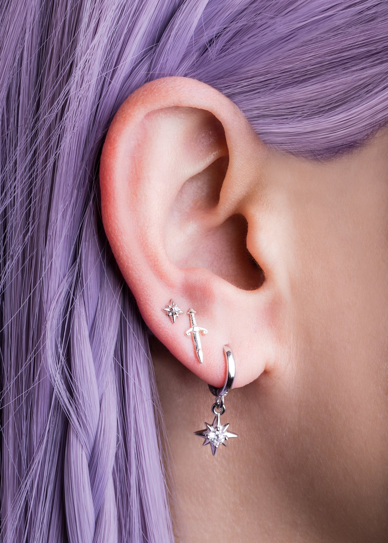 In astrology, Zenith is used to track stars by using the observers position in relation to the space above them. Drawing invisible lines and angles with the horizon. Much like the points and angles in these stunning studs.