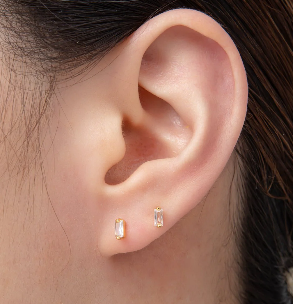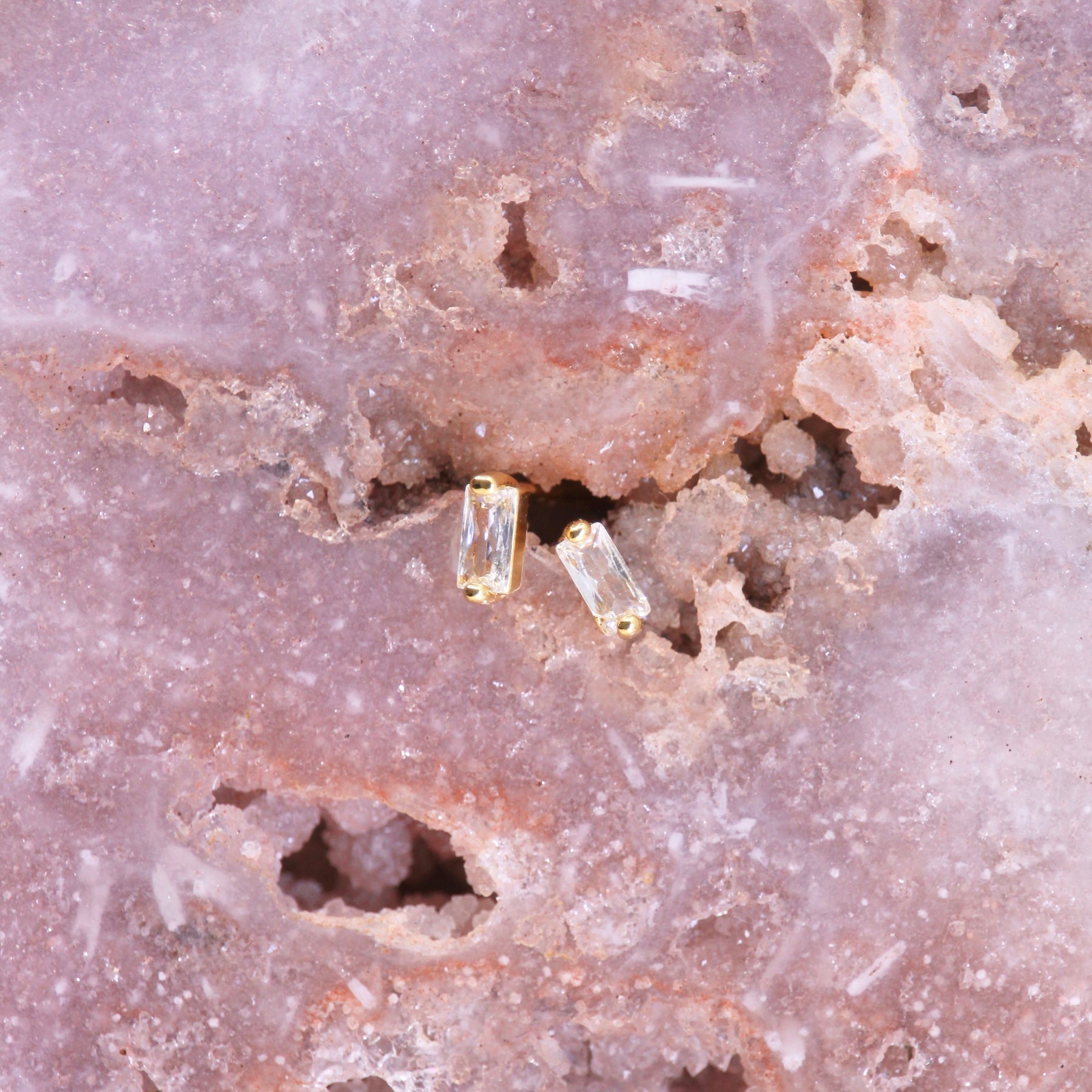This dainty rectangle charm has a single star burst set cz in the center, making it shine even brighter. Named after the brightest star in the northern constellation of Lyra, Vega which is arguably the next most important star in the sky after the sun, these studs are as brilliant and unique as the star.