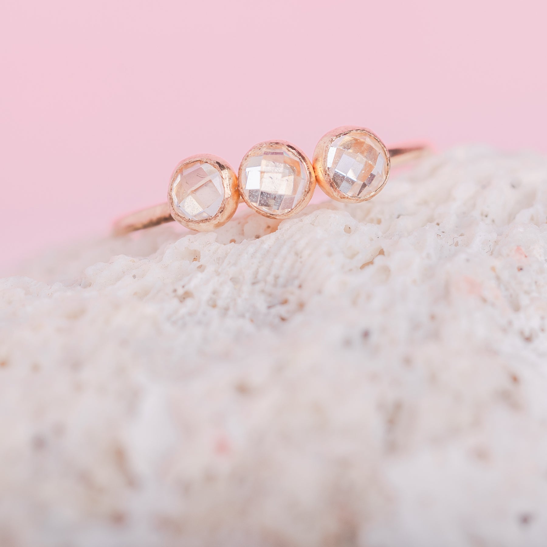 The Sisters ring has a row of three stones, set close together.  Each stone is unique, but similar, like sisters.