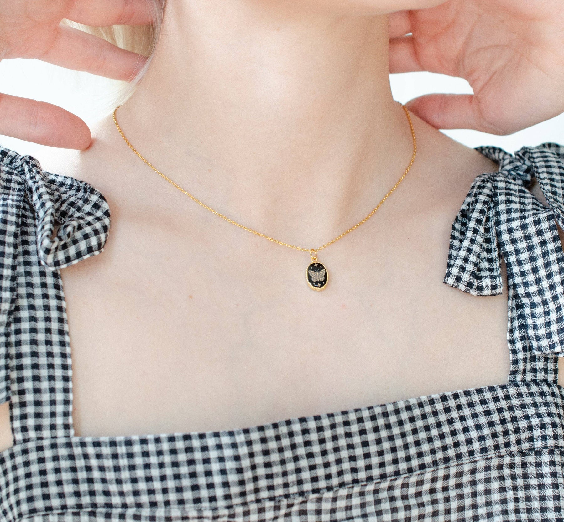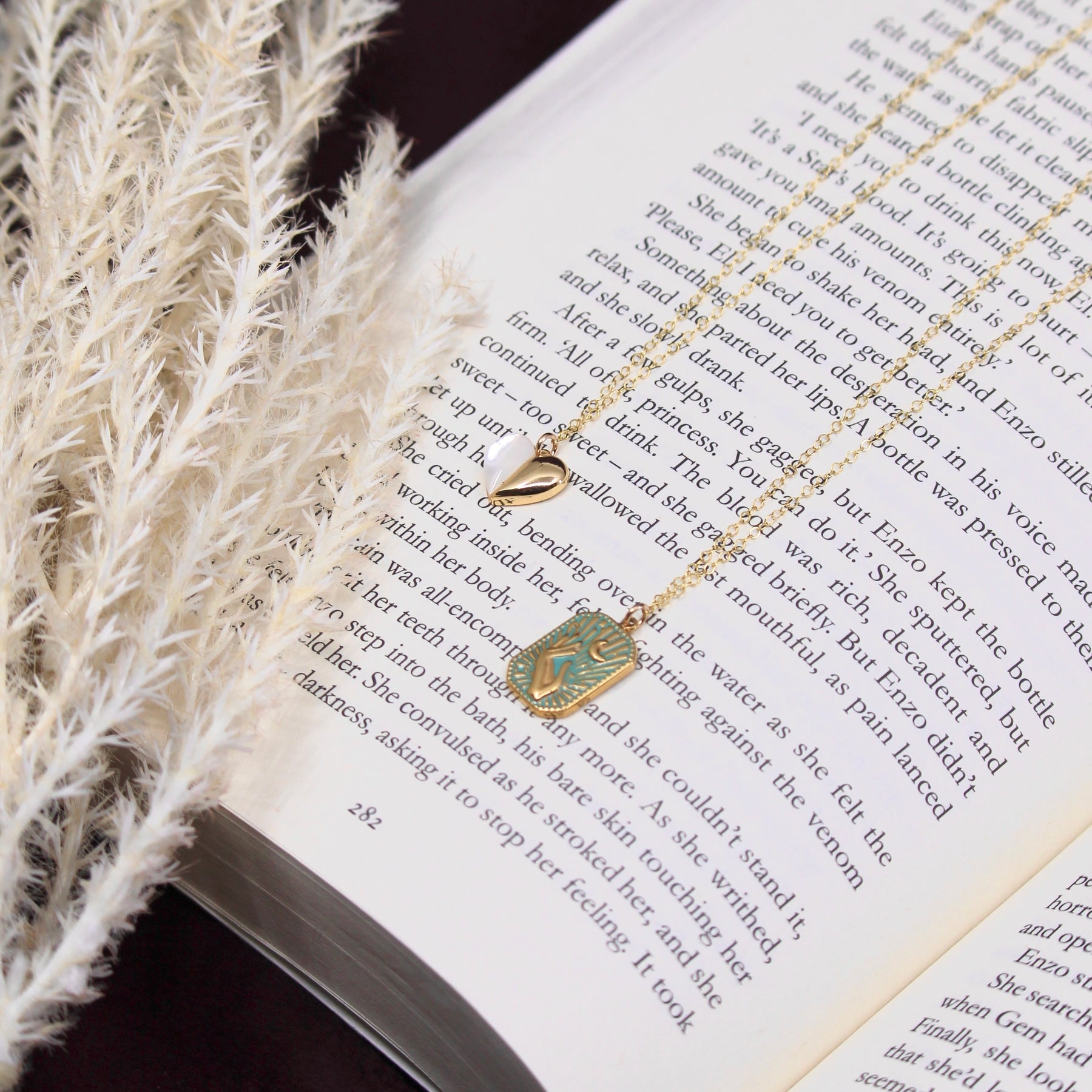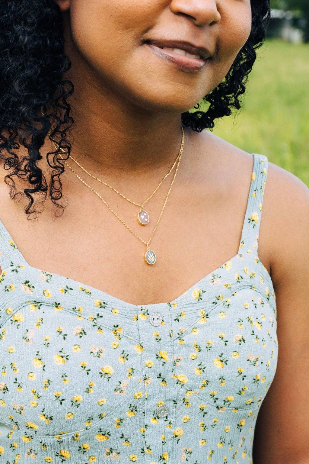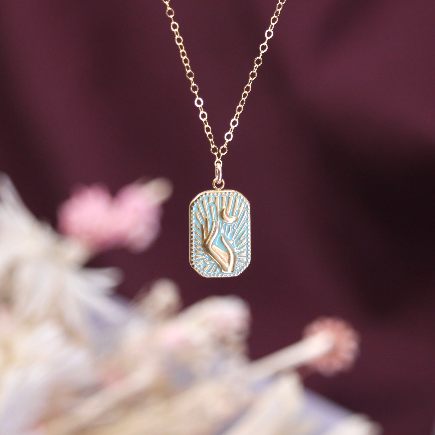 Pendant 10mm X 16mm with colored enamel Approximately 17" + 2 " extender Satelite Chain 14 karat gold vermeil or sterling silver. Haiku Lane uses high quality materials including 925 Sterling Silver and 14 Karat Gold Vermeil.