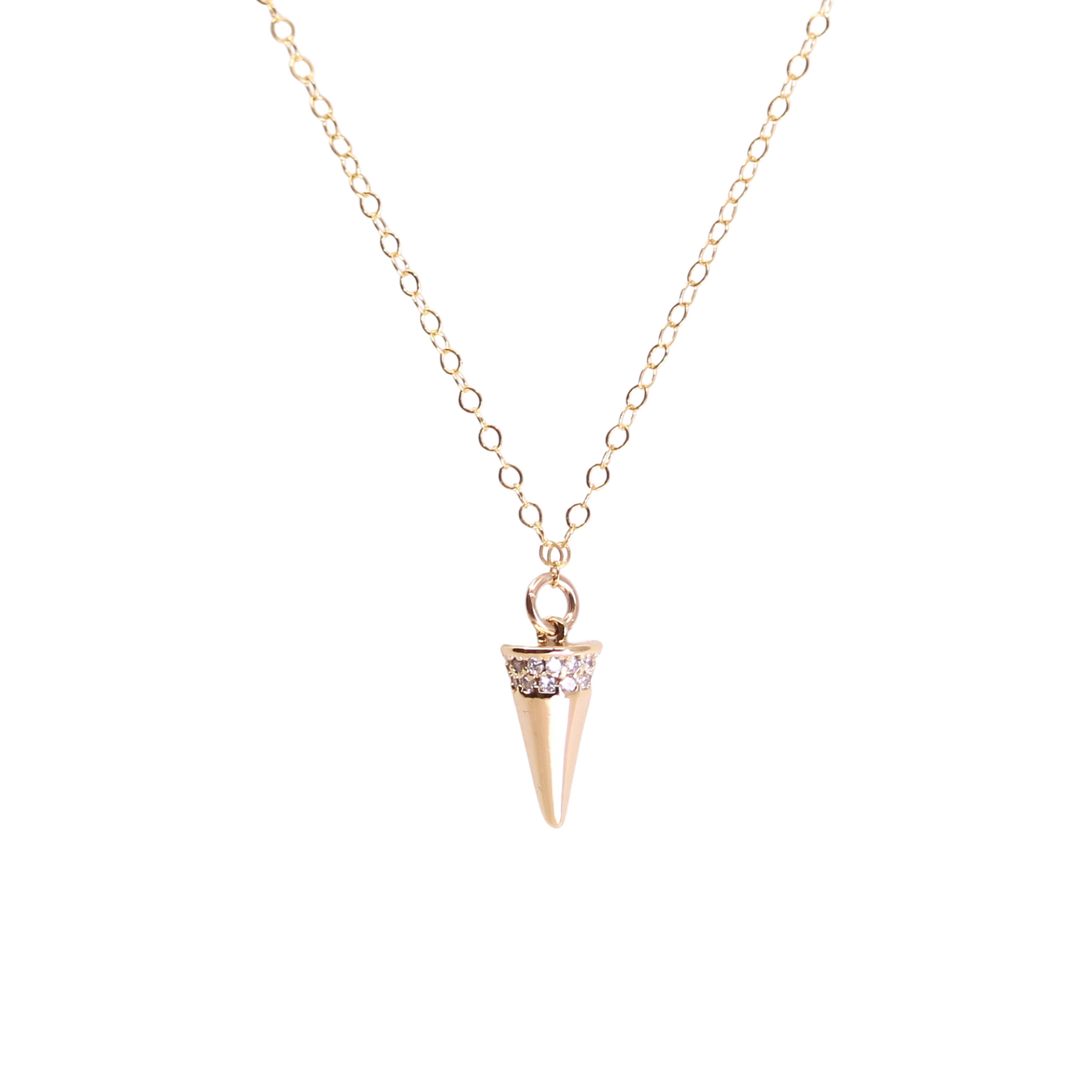 Show power and elegance with this cz paved spike. Sharpen up your look with this resilient pendant. This statement piece is perfect for everyday wear or stacking for special events!
