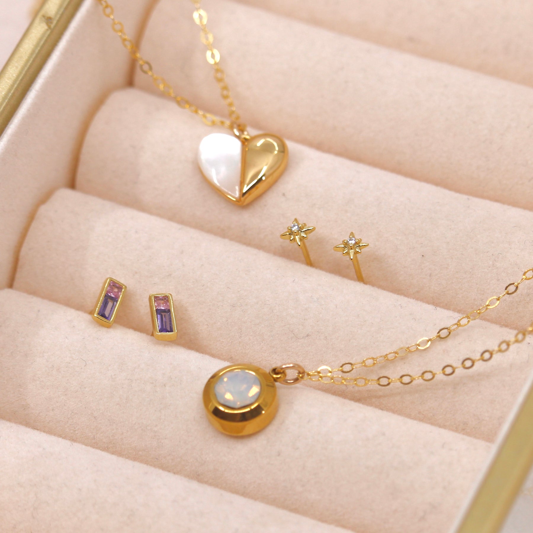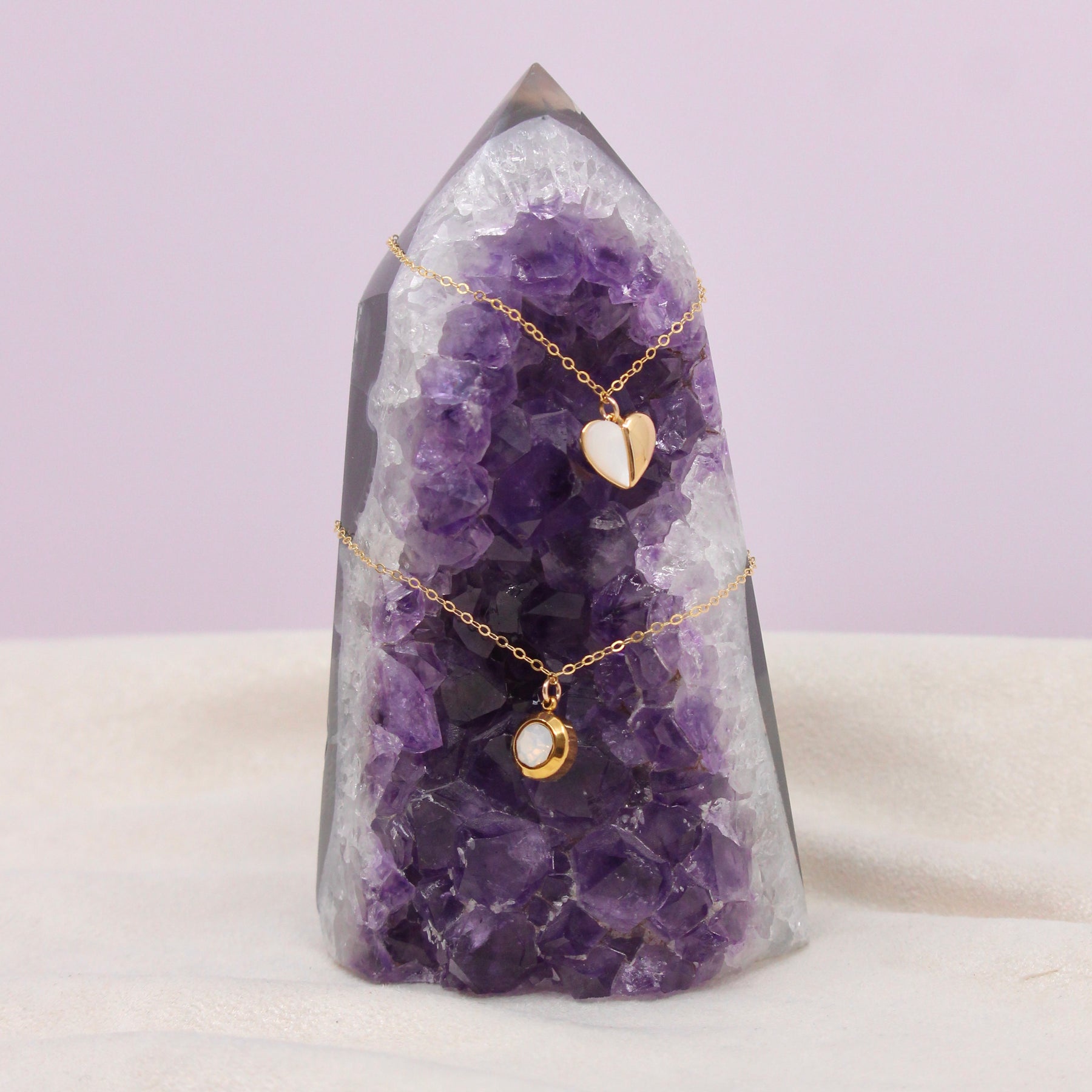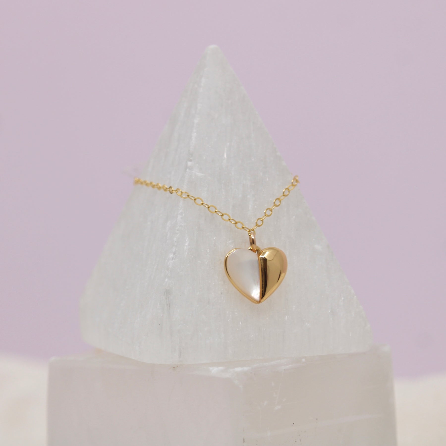 Named after the heart shape on pluto, this necklace is sure to bring love and celestial energy your way. Show your inner heart with this Necklace holding a mother of pearl stone that shimmers and glows.
