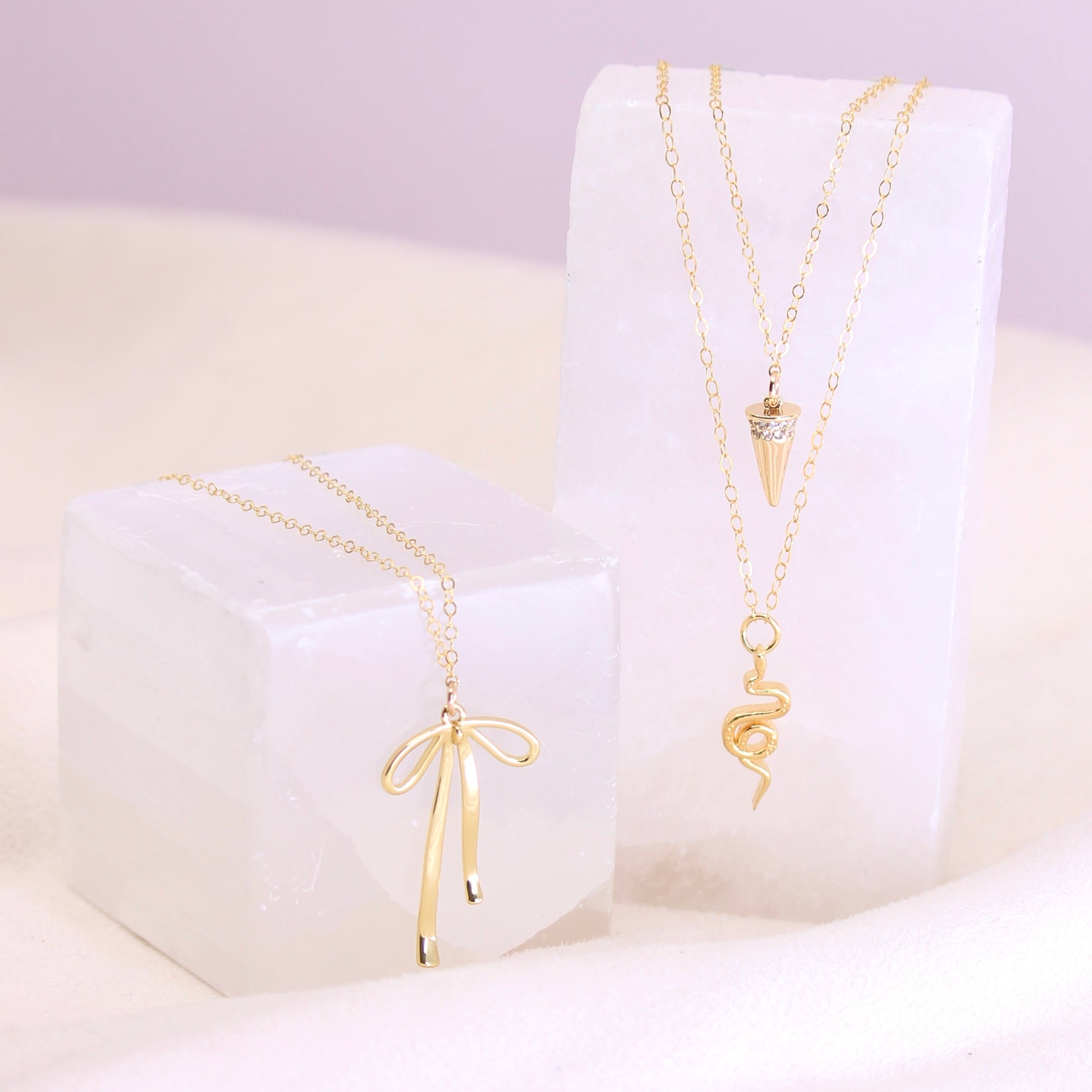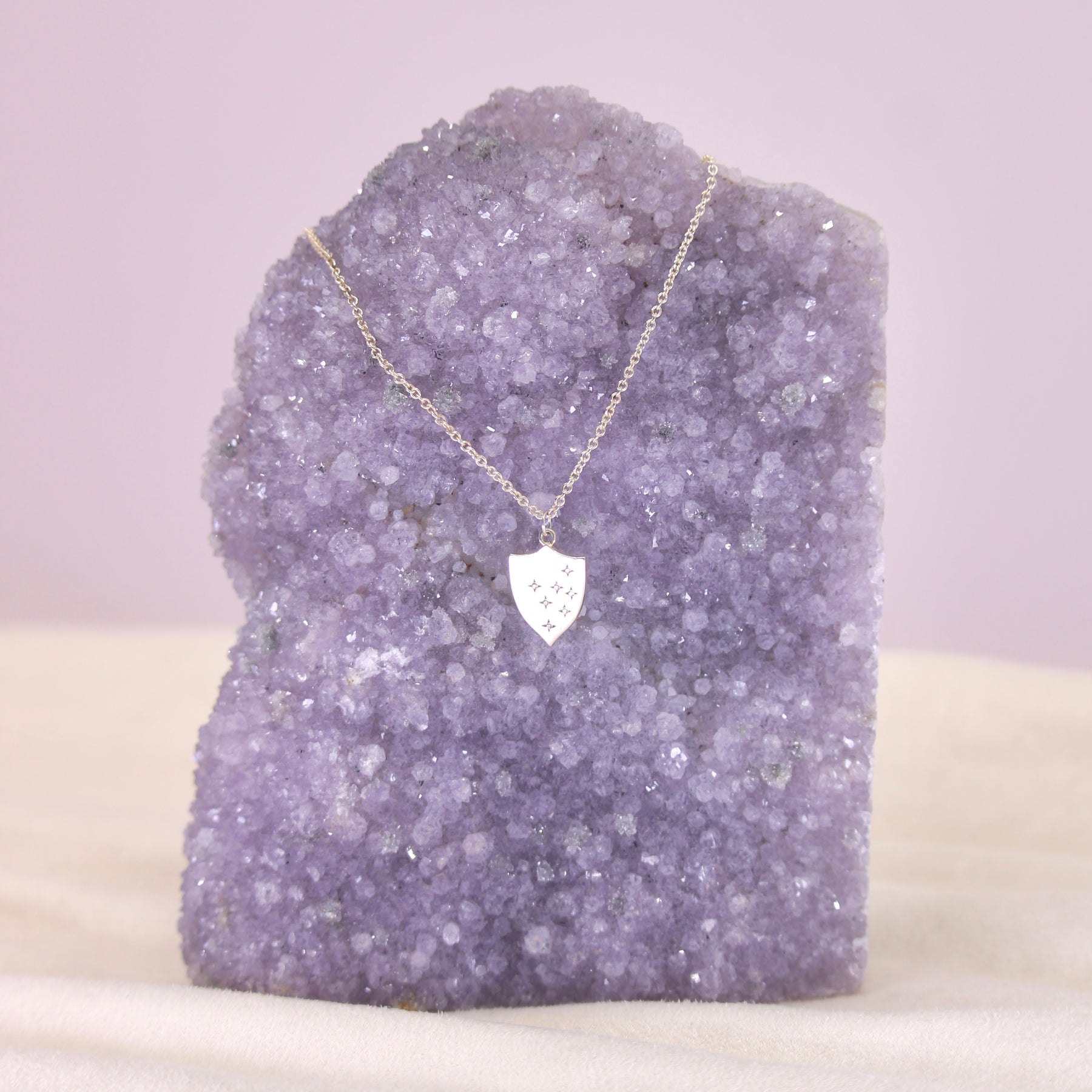 The Egyptian goddess Neith - and we - have got your front and back, especially when it comes to her talisman’s oath to protect. And while she wears her shield upon a crown, we thought it appropriate for our inverted triangle CZ inlaid shield pendant to be found pointing down from your neck and chest, as a charmed/gilded sign of our respect.