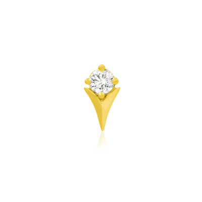 A single flat lightning bolt top shape in 14k yellow or white gold with a press fit post.