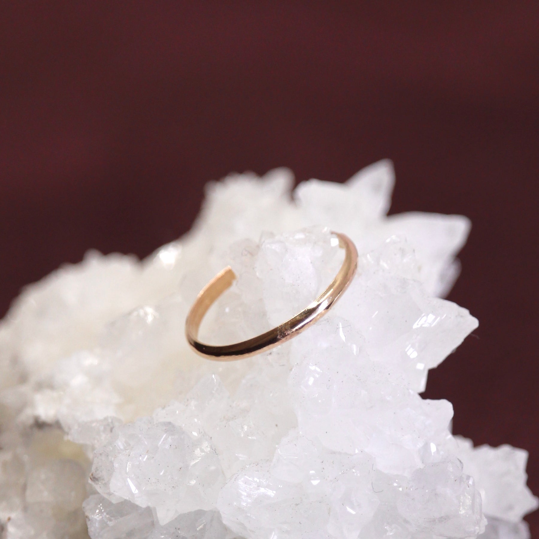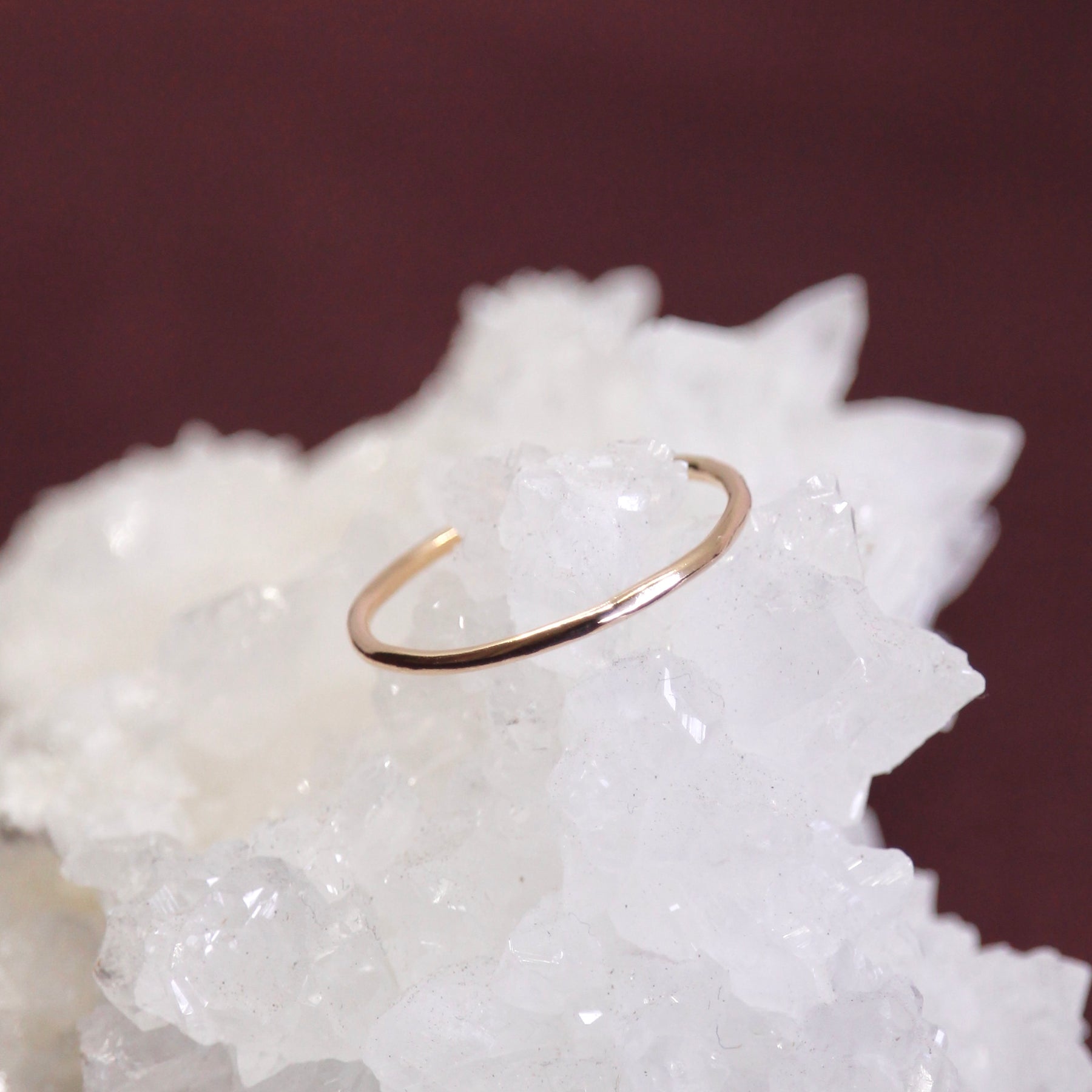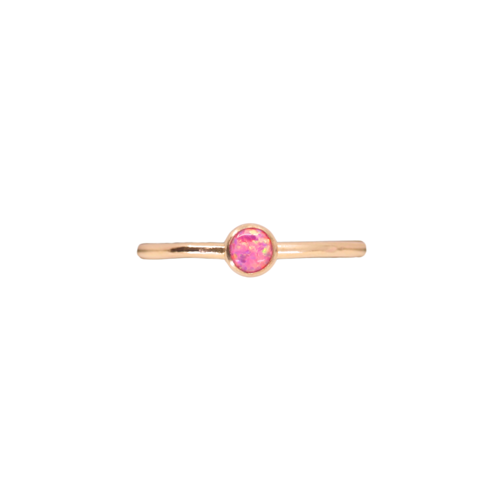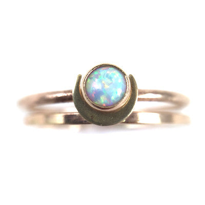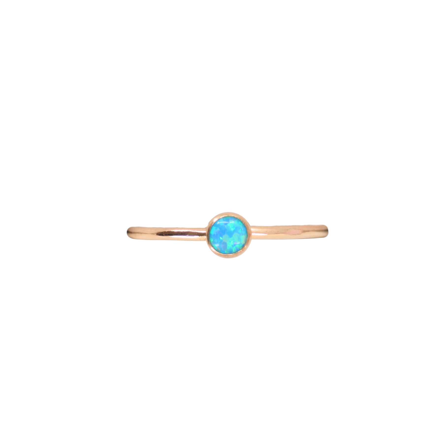 Opal is an emotional stone and reflects the mood of the wearer while intensifying emotions and releases inhibitions. She greatly encourages both freedom and independence. Hand-formed, this ring is set in a bezel style in 14k goldfill