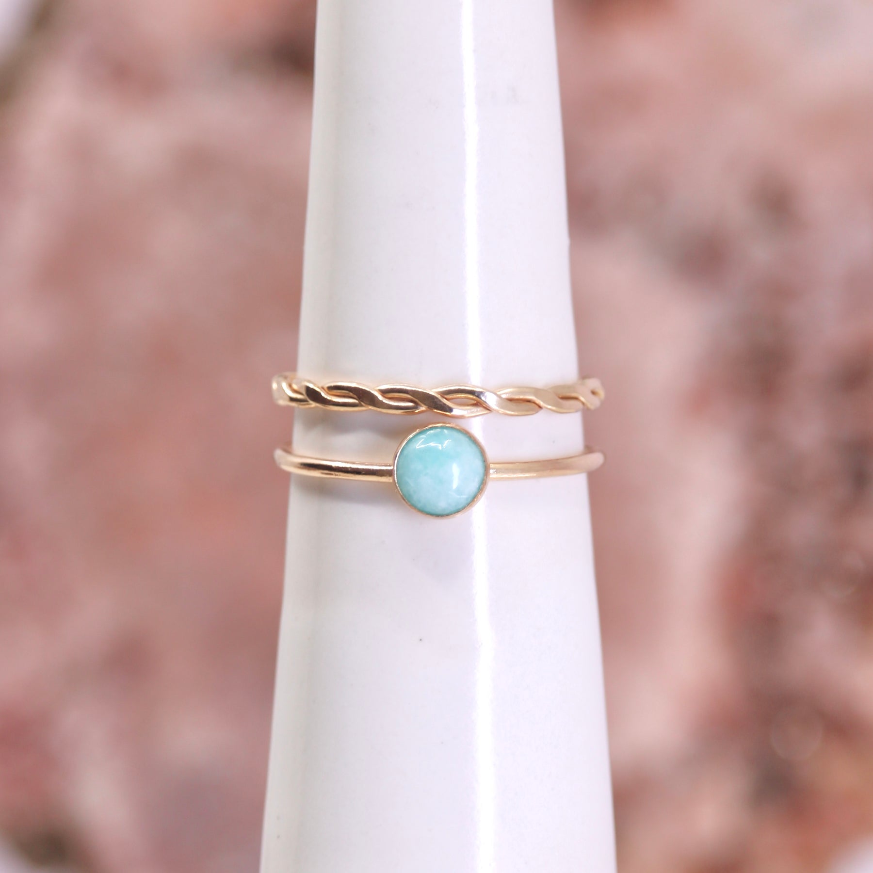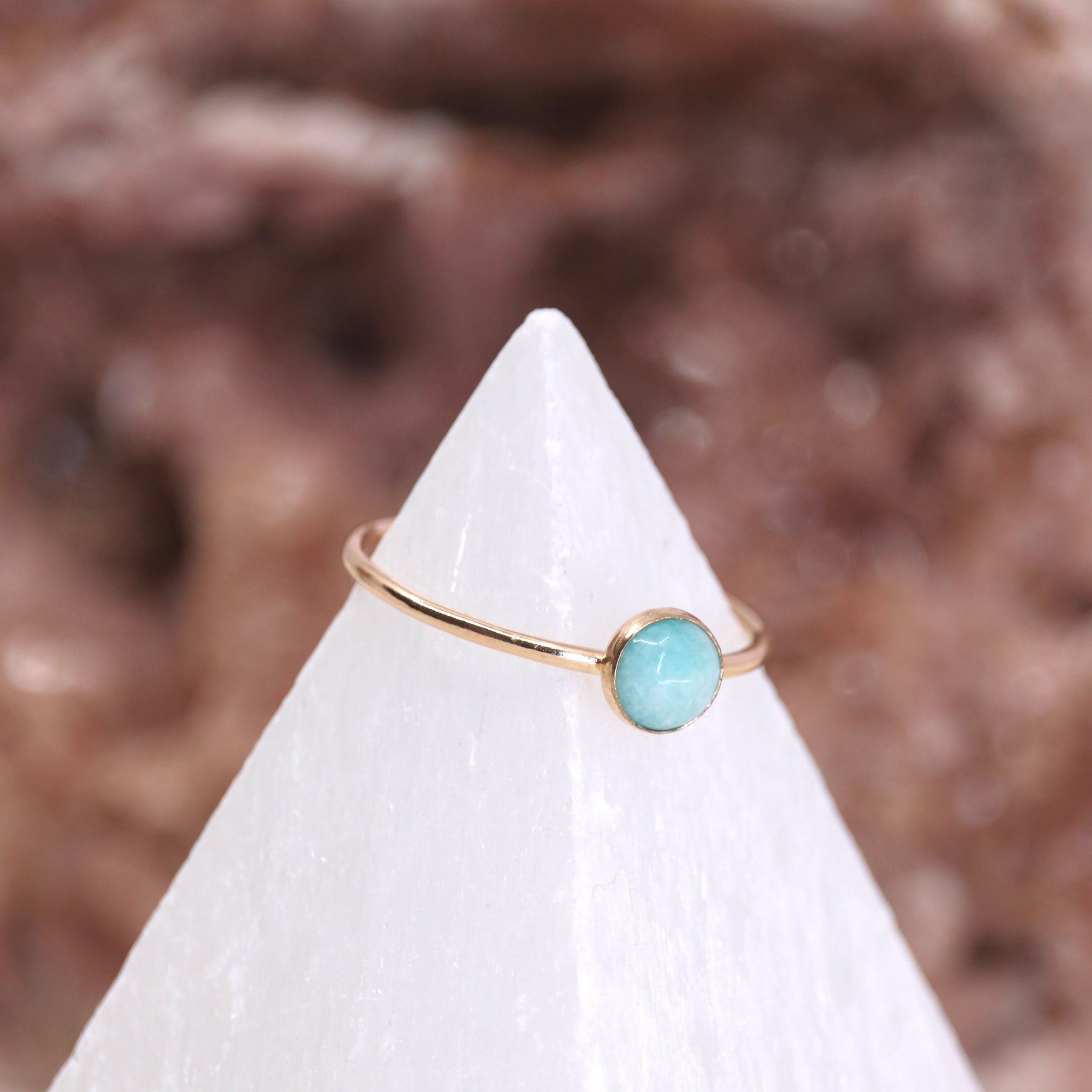 Our Duo Ring series are the perfect rings to add a pop of color to your everyday rotation or a special occasion. This ring features an oval blue-green chrysocolla with an opal complement.