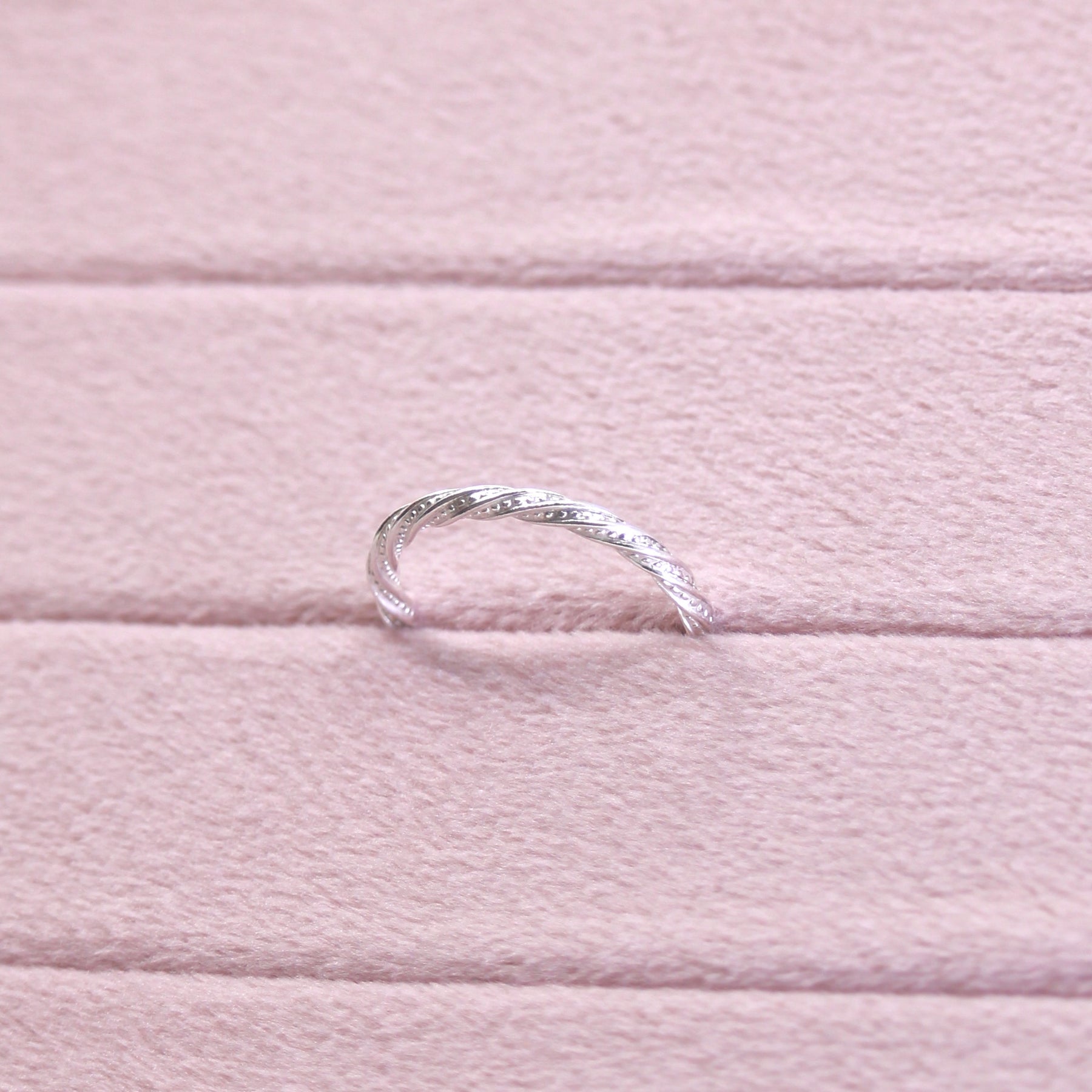 A delicate twisted band is a great stand along ring or works well adding a little interest to a stack of rings. .925 Sterling Silver