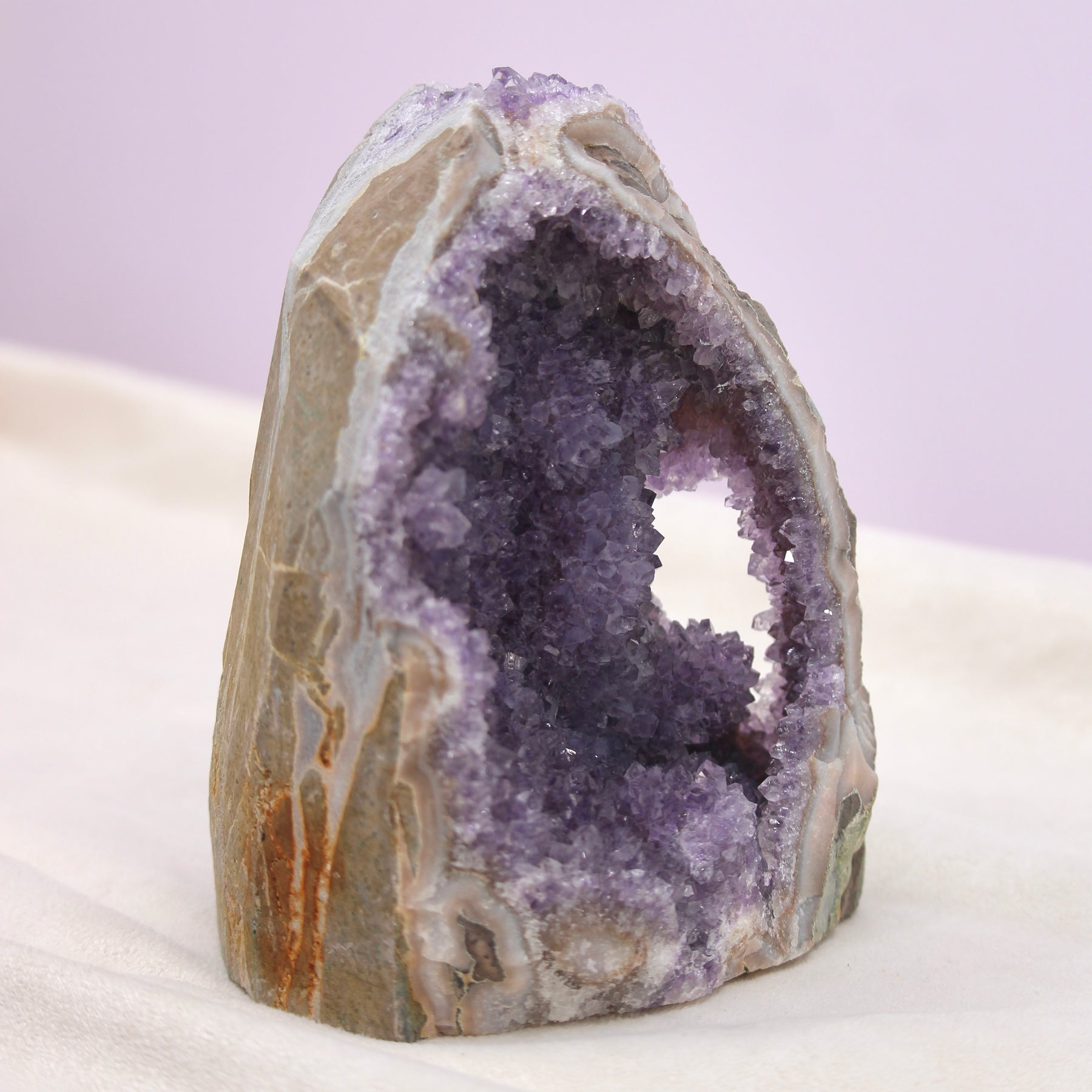Cactus Amethyst Quartz is a purple variation of traditional Quartz crystal that can be round or hexagonal in shape and is largely covered by a layer of second generation crystals. They are considered rare, found only in the mountainous regions of South Africa. These specimens are from Mpumalanga, South Africa specifically.