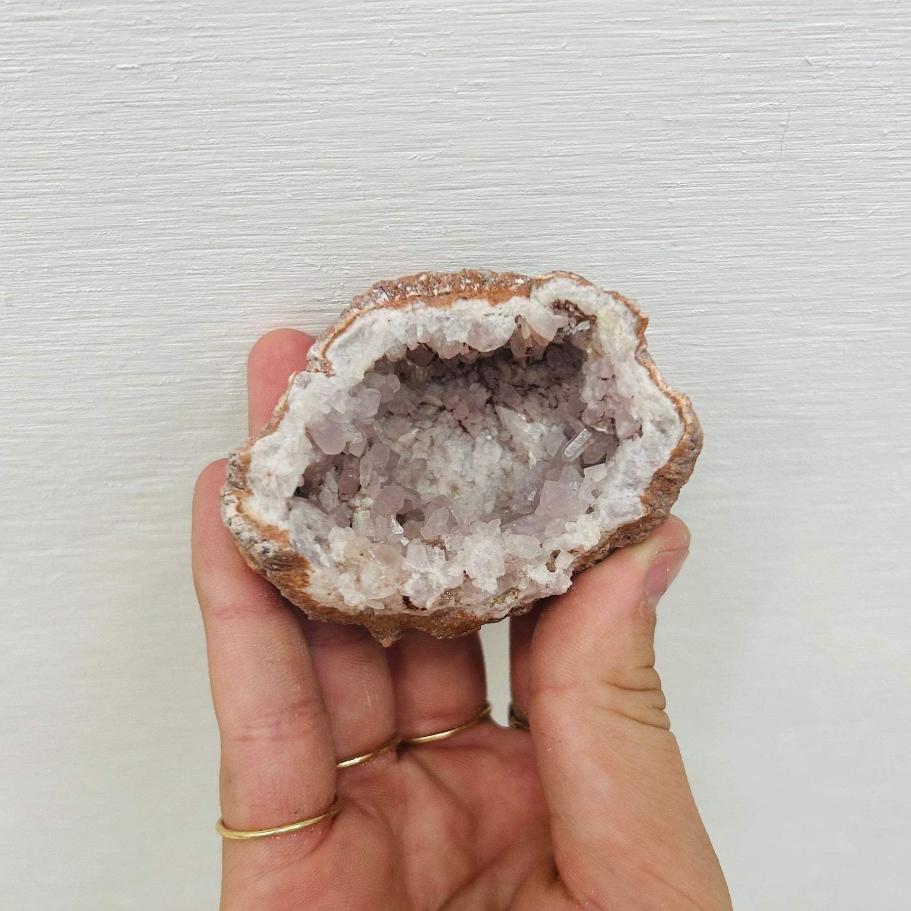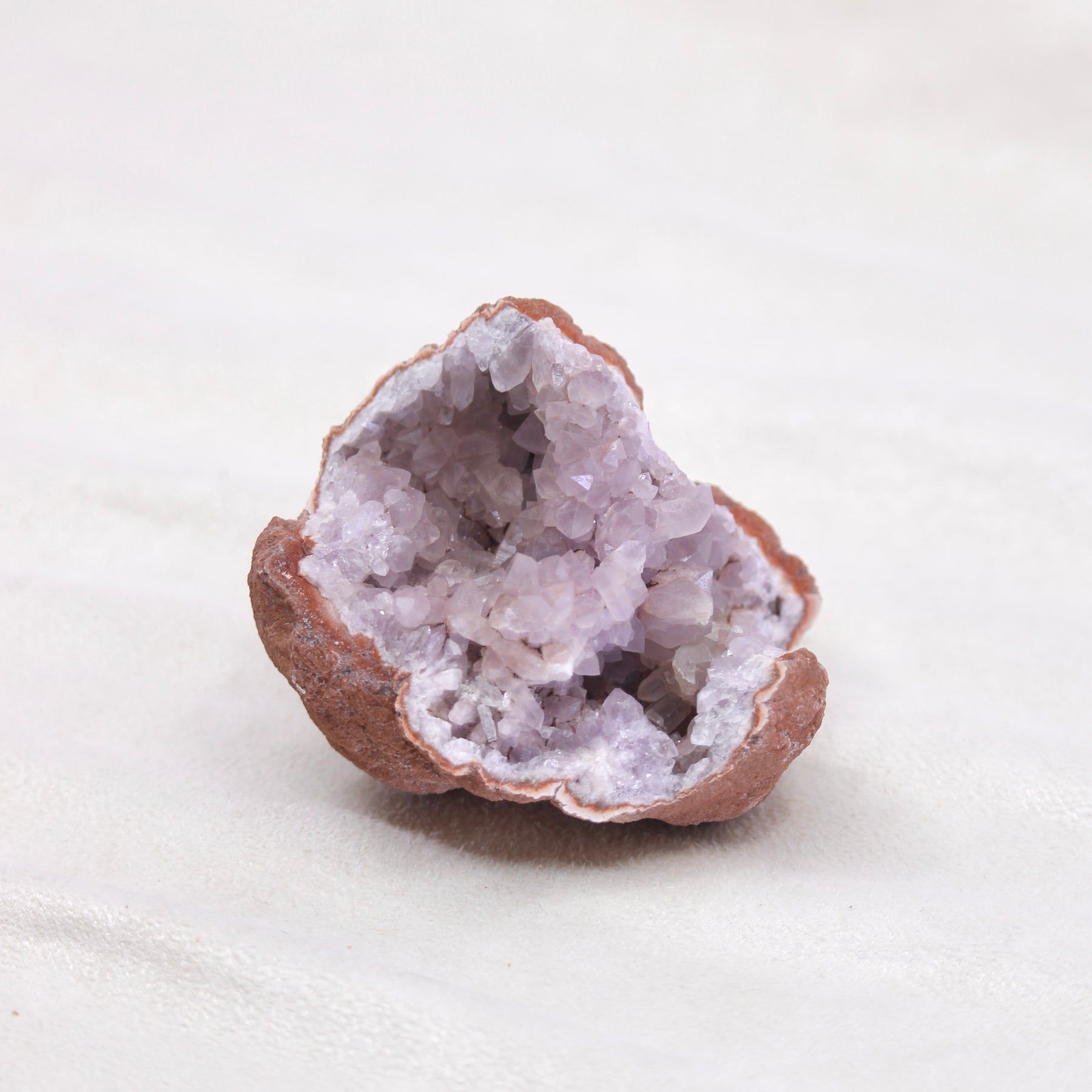 These stunning Pink Amethyst geodes feature a natural rocky outer shell and incredibly detailed semi-translucent crystals of varying sizes and shades of mauve pink color that brilliantly sparkle in the light, beautifully displaying the contrast between a geodes natural earthy outside and magnificent crystal inside.