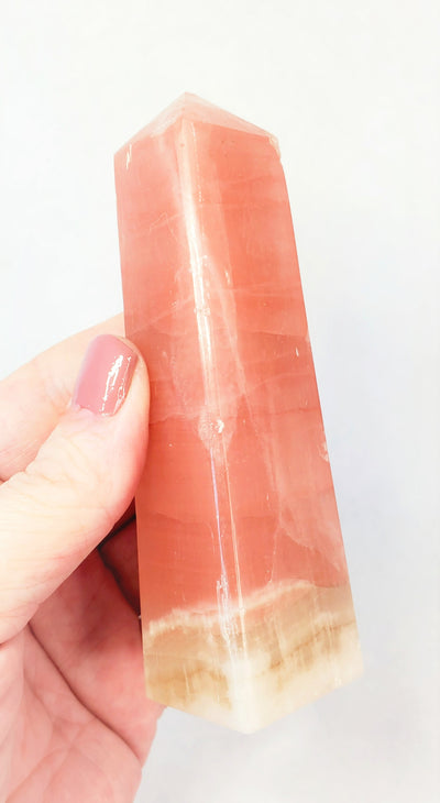 Calcite can be found all over the world and in many different colors depending on its mineral inclusions; Rose Calcite gets its pink color from manganese and can vary from light to dark hues depending on the concentration levels of manganese found within the specimen.